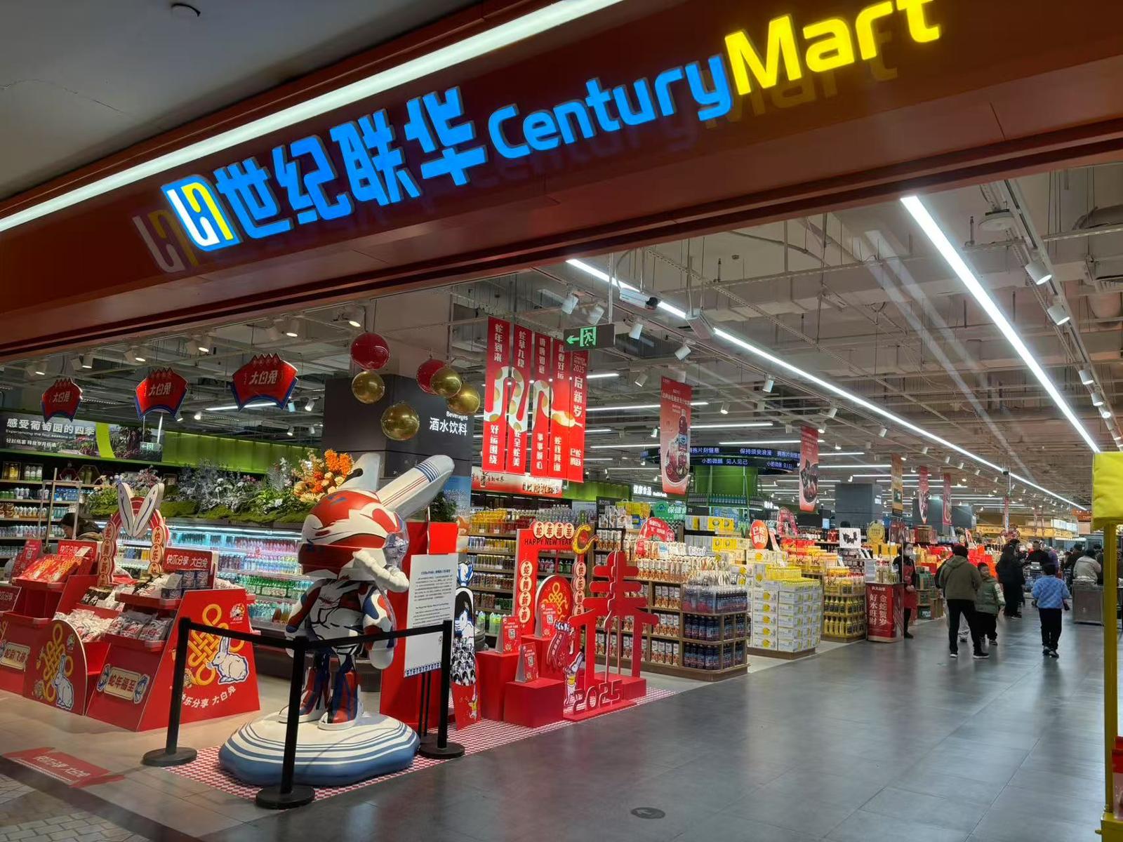 由中庭步入世纪联华中环年货街市,也充满了浓浓年味儿。现场,汇聚了超百余款全球好物与国潮精品,不仅满足了消费者对品质生活的追求,也为新春佳节增添了更多的喜庆氛围。