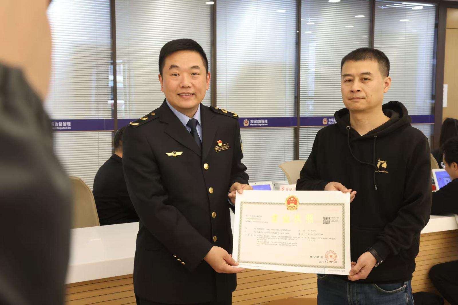 上海推出市场准入登记便利化十条措施,图为上海市市场监管局局长倪俊南为相关企业颁发证照。上海市市场监管局供图