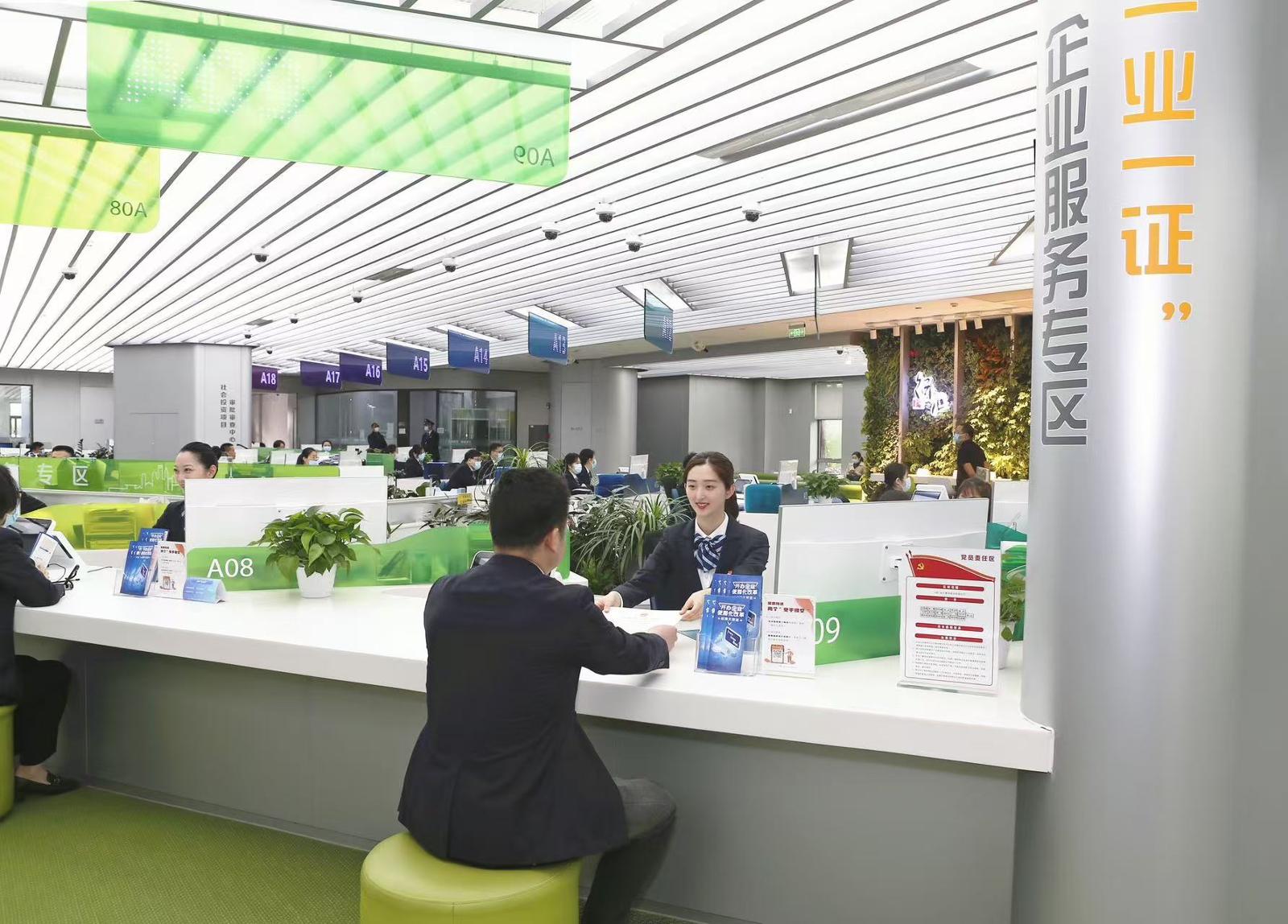 行政服务中心大厅窗口照片。徐汇区市场监管局供图
