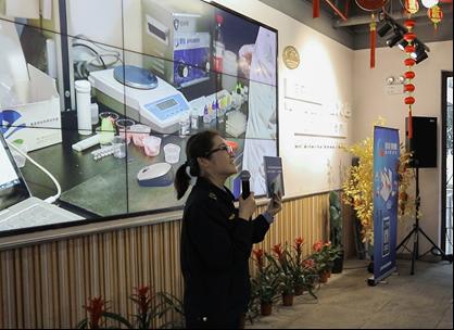 活动现场,快速检测项目以“一镜到底”的直观形式呈现,通过大屏幕全程零距离直播,市民可以清晰看到菜场中心快检室对猪肉进行瘦肉精检测的全流程操作:从样本的称重、粉碎,到试剂的添加、反应,再到仪器的数据分析,每一步都公开透明。