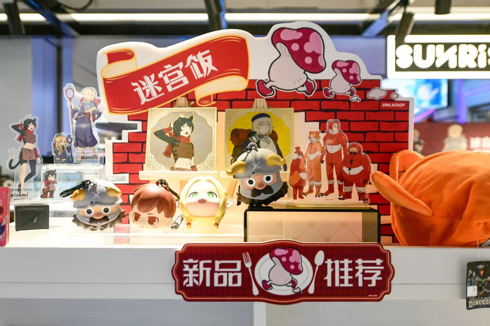 动漫《迷宫饭》的立牌等谷子。劳动报记者 颜筱依 摄影