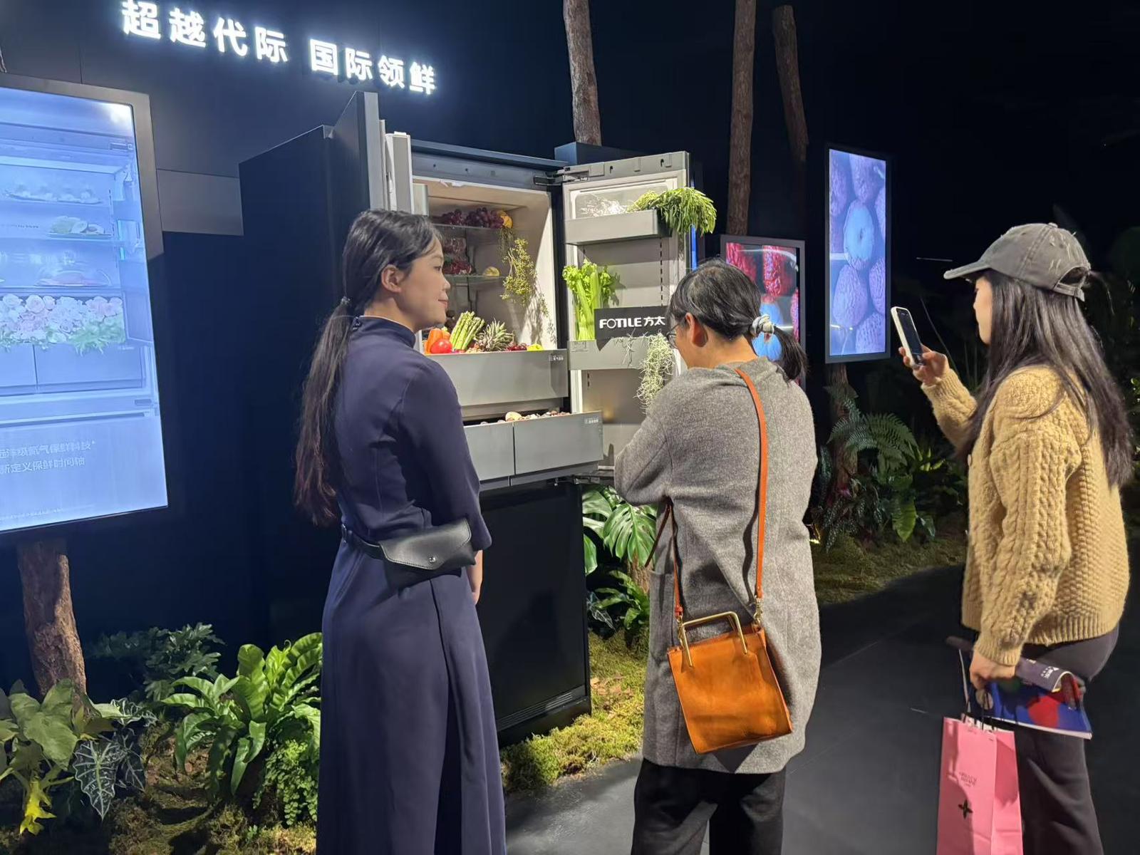 厨房里的冰箱也悄悄在升级。在AWE现场,最新的嵌入式灶具外,“全嵌冰箱”成为热词。“没有缝隙,没有把手,融合式全嵌设计,和厨房的橱柜‘融为一体’。”方太工作人员透露,冰箱的尺寸与常规的家用橱柜几乎相同,颜色也可以与厨房的其它橱柜一致,“隐藏式”的设计会让家更具“新鲜感”。