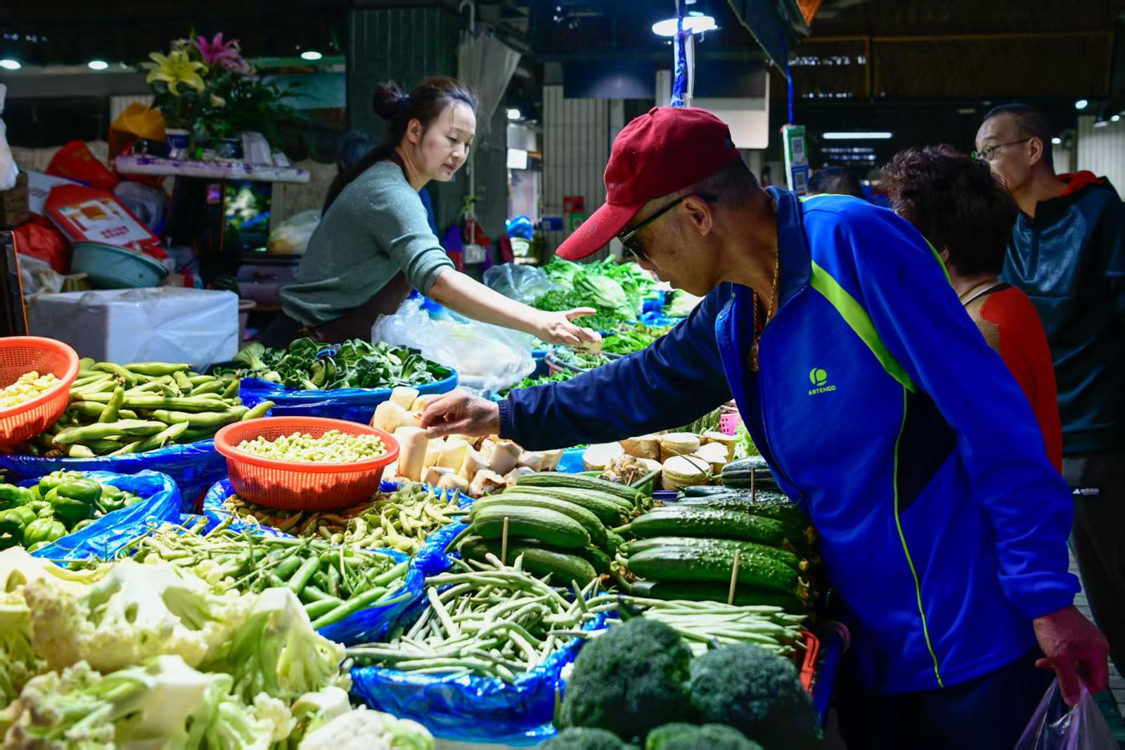 市民正在菜场购买时令蔬菜。劳动报记者颜筱依 摄影