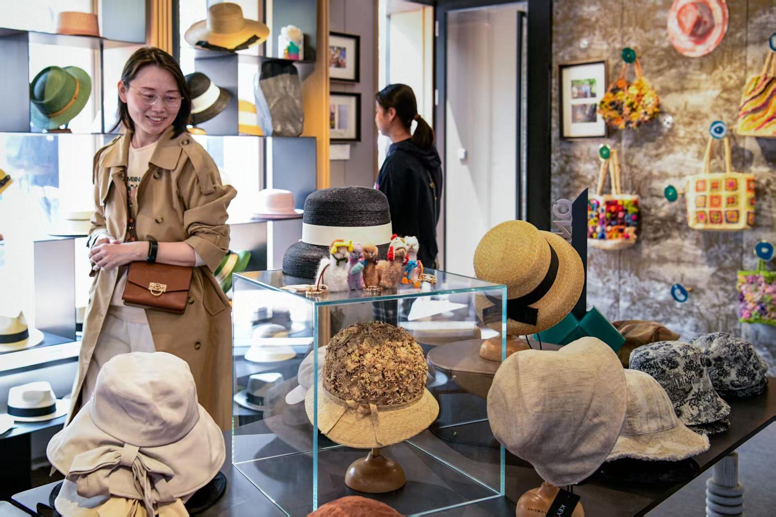 头图:春夏玩起“帽子戏法”,图为HATTERSHUB帽仕汇门店。劳动报记者颜筱依 摄影