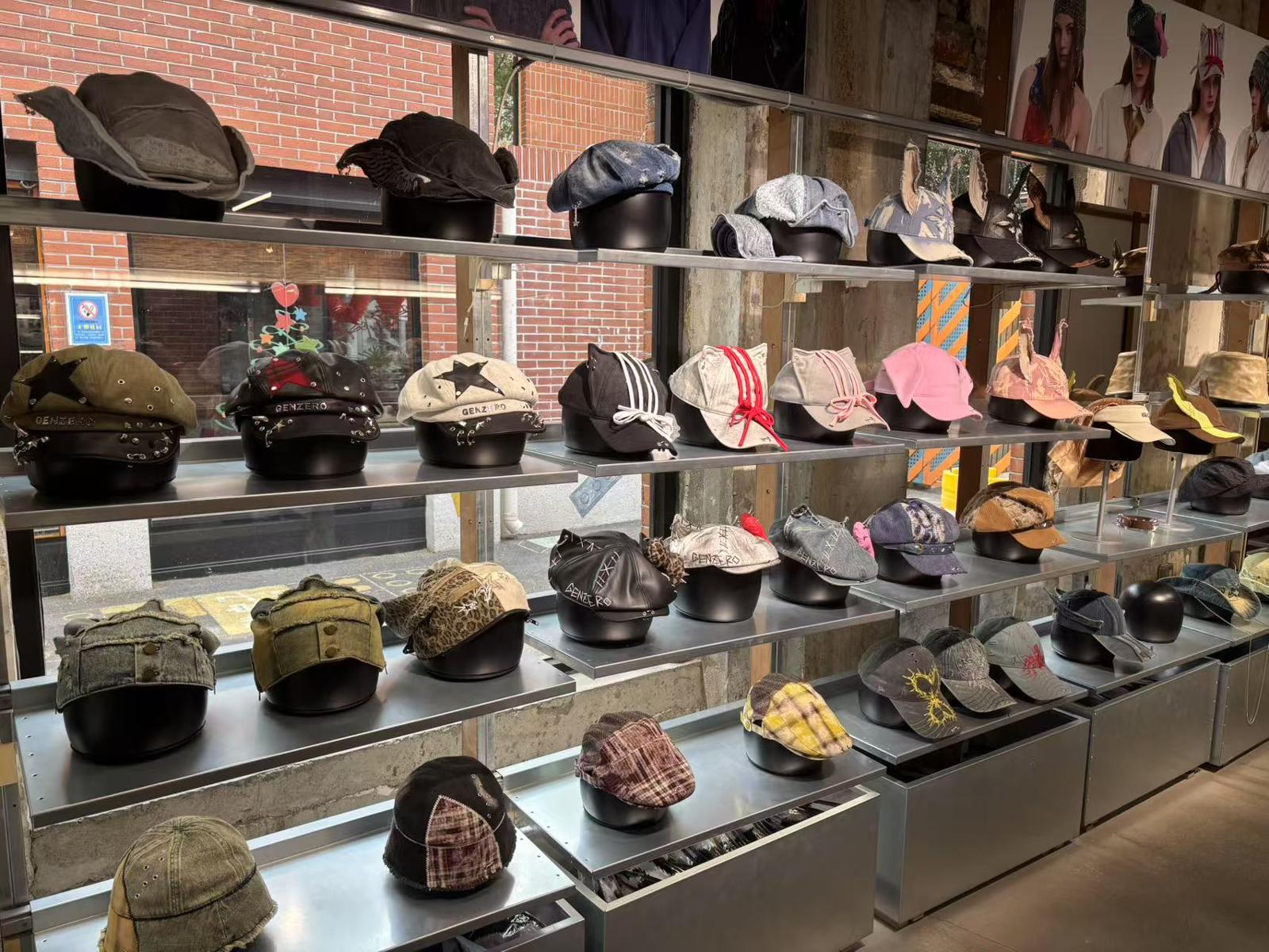 店名非常朴素,算是一家周边居民每天回家会路过的转角小店,却算是在上海市中心为数不多的“帽子控”的宝藏店铺。这家店铺的格局很特别,从里到外、从上到下都是帽子,帽子层层堆叠的现场很是壮观。其中,也有不少潮流帽饰的“原单”“尾货”,戴上也很“出片”。