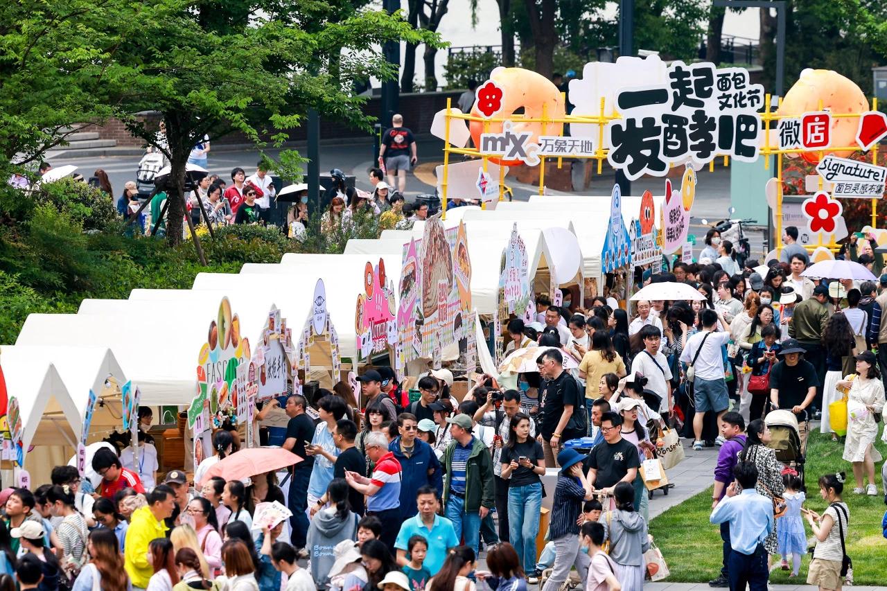 市中心“网红”商场上海苏河湾万象天地,一场“一起发酵吧·面包文化市集”登陆西里L1慎余里广场,汇聚超70+特色面包品牌,“面包脑袋”足不出“沪”就能一站吃遍全国。此次“五一”假期客流创新高,仅假日首日客流就突破10万人次,假日期间持续迎来客流高峰。