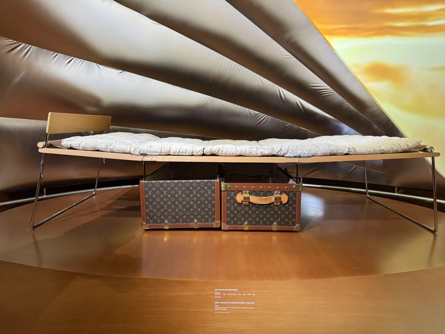 LV展出“床箱”展品,可以从箱中拉出一张床,以方便旅途。李美慧 摄影