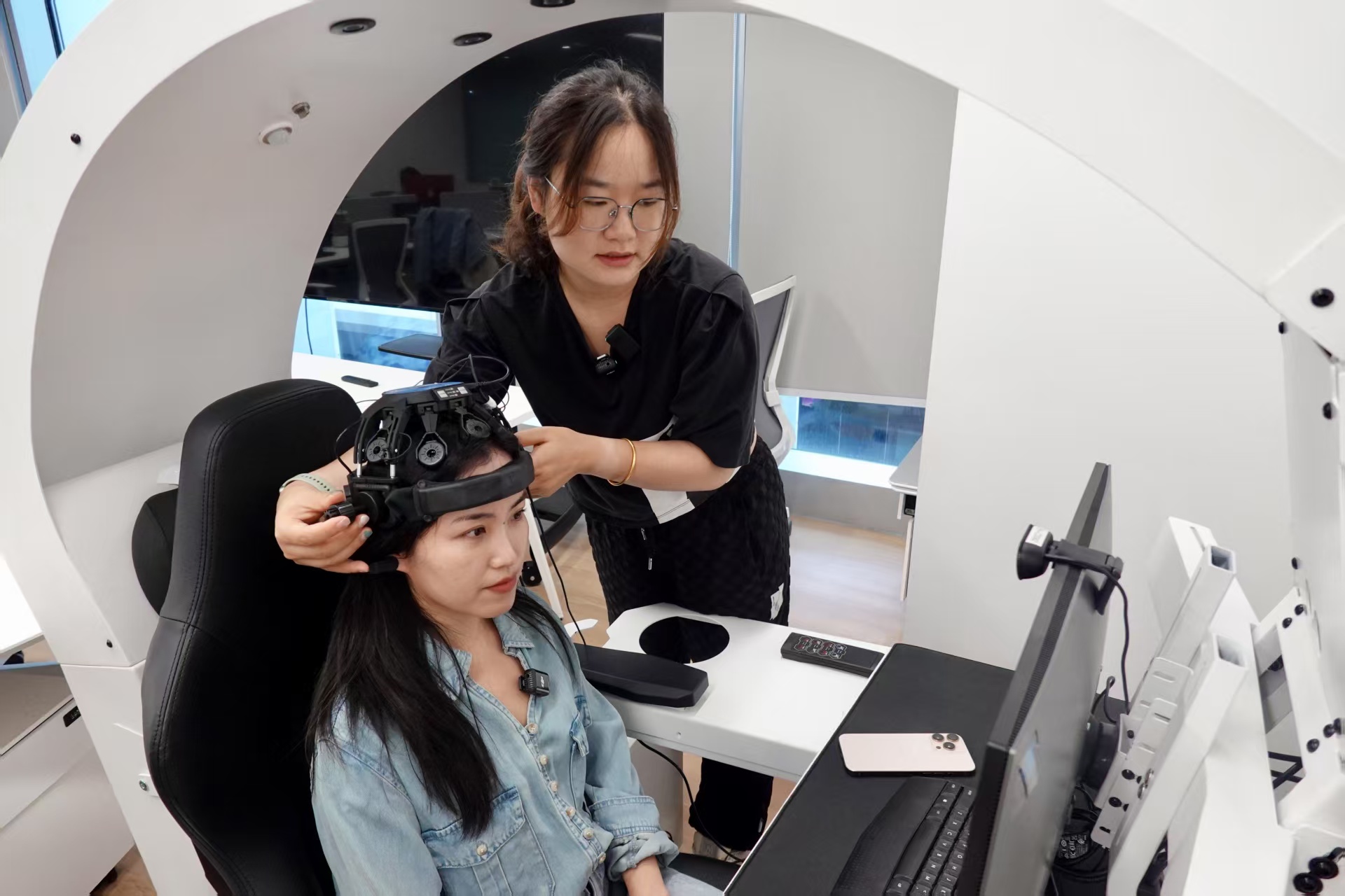 劳动报记者在体验模速空间入驻企业零唯亿思研发的“情绪X光机”。劳动报记者贡俊祺 摄影