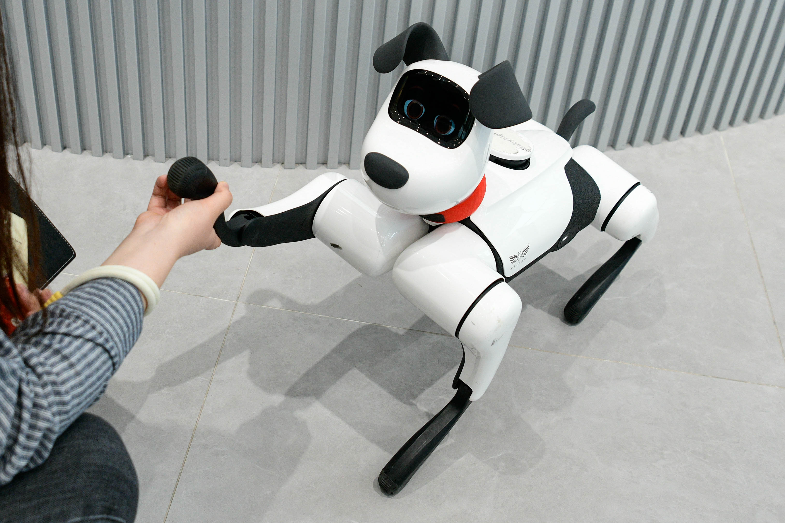 市民与机器狗在体验店内进行互动。劳动报记者颜筱依 摄影