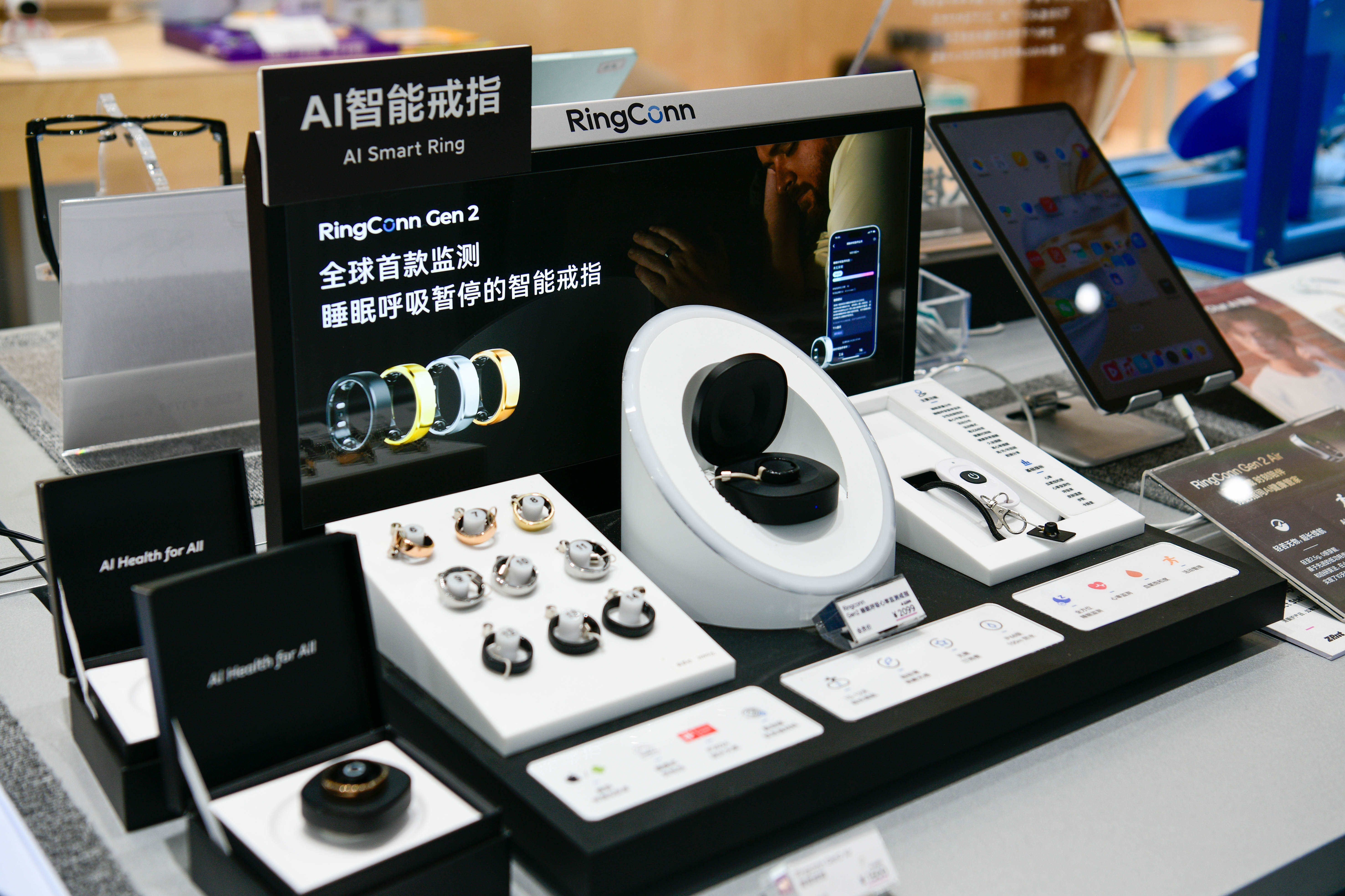 在店内可以体验全球首款检测睡眠呼吸暂停的戒指。劳动报记者颜筱依摄影