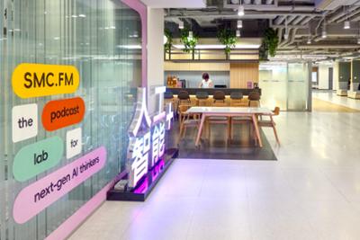 与模速空间一期办公楼一街之隔,坐落着上海首家“AI黑科技体验空间”,打通了AI产品进入生活的“最后一公里”。能实时翻译、能看电影的智能眼镜,零音乐基础也能弹奏的无弦智能吉他,能监测睡眠呼吸暂停的智能戒指……让尖端的AI技术变得可感、可玩、可惊叹。