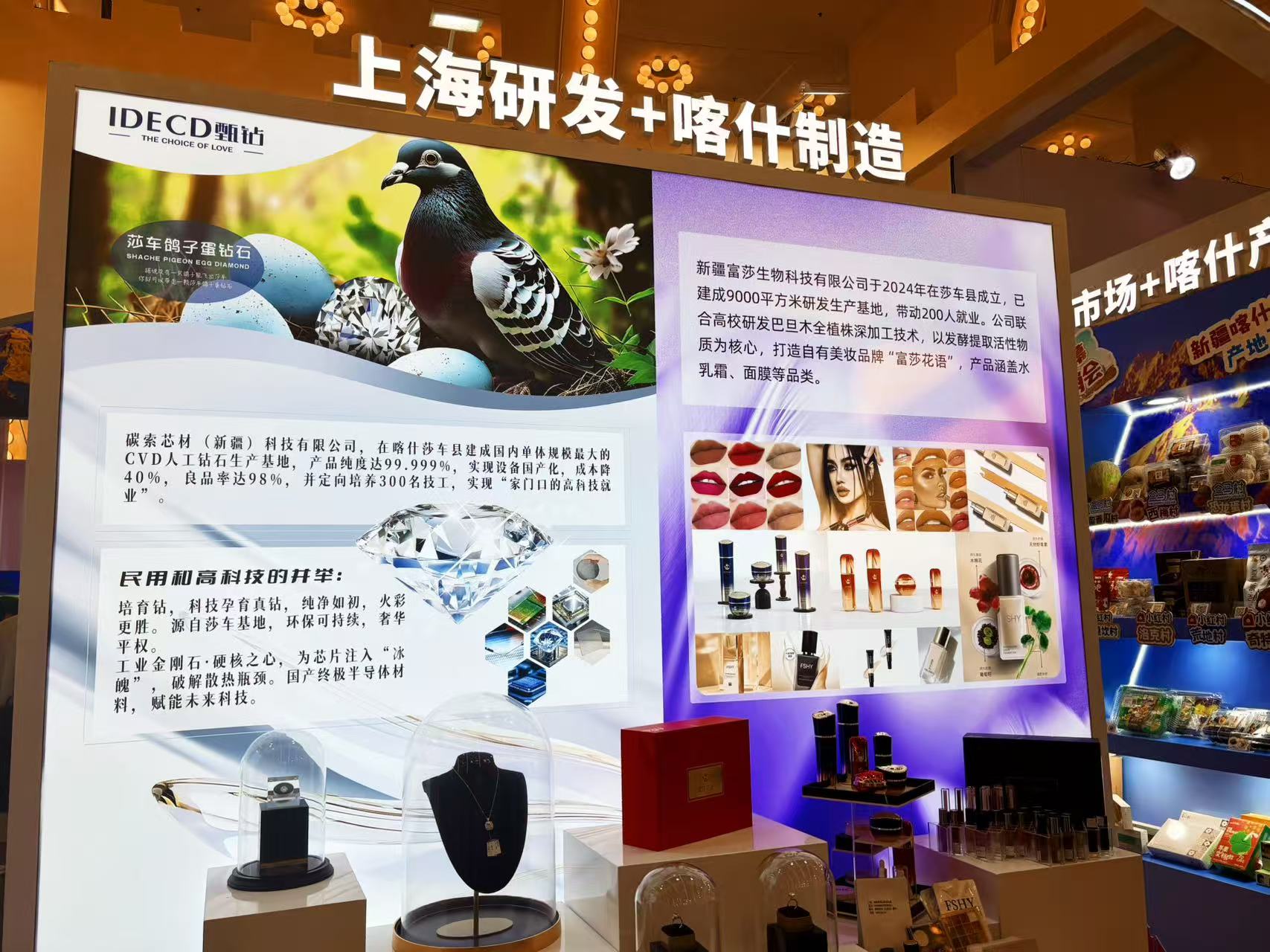 而在莎车,除了各式各样以鸽子为特色的美食,还盛产着如同“鸽子蛋”大小的钻石——它们来自碳索芯材(新疆)科技有限公司的尖端培育钻石生产线。碳索芯材采用国际领先的微波等离子化学气相沉积技术(MPCVD),生产纯度高达99.999%的培育钻石。这些钻石不仅媲美天然宝石,更广泛应用于半导体、航空航天等高科技领域。企业现已在喀什建成国内最大的CVD人工钻石生产基地,让更多当地群众在家门口实现高质量就业。