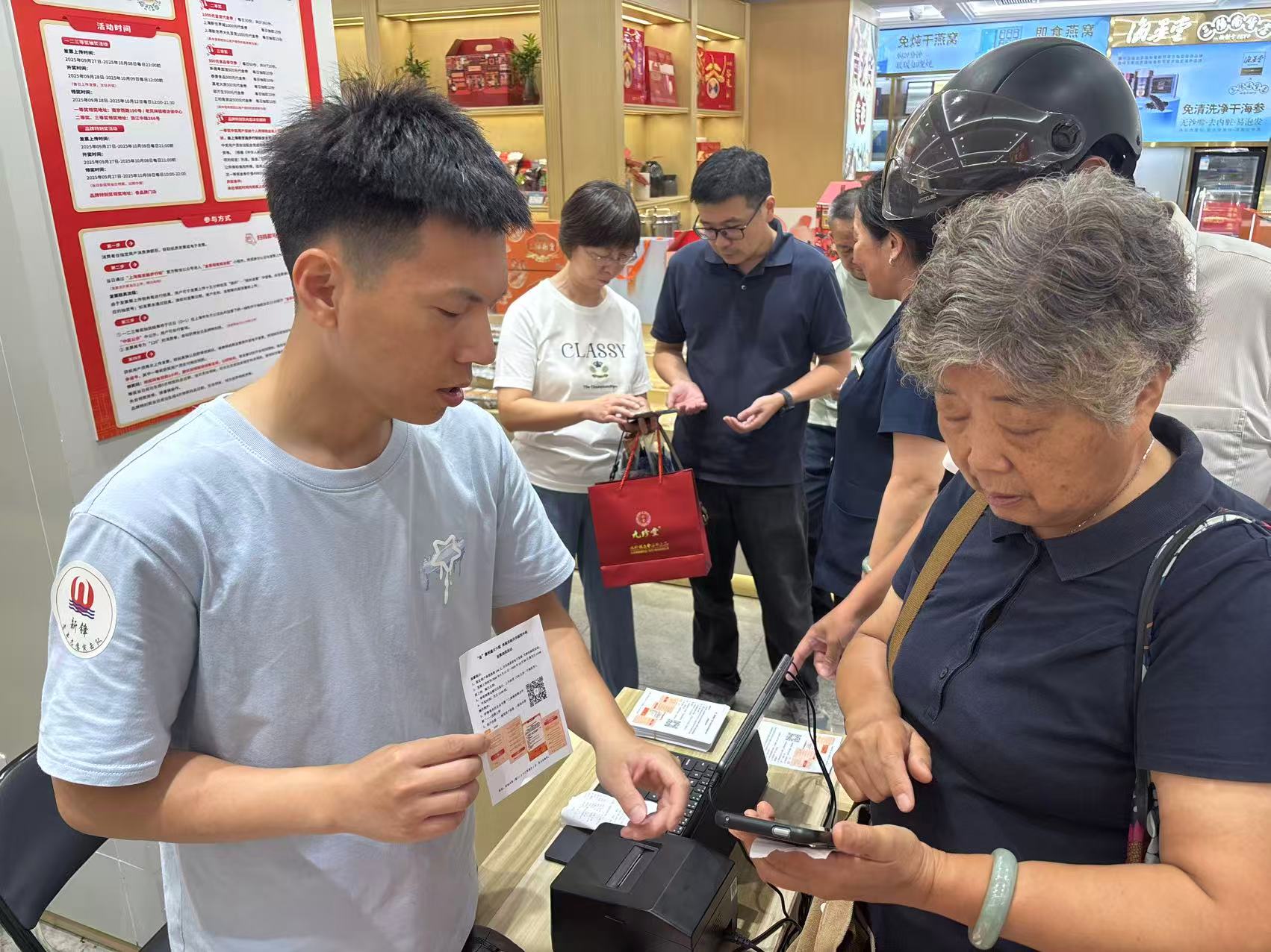 三阳南货店内,市民消费后现场参与南京路步行街“金喜相逢”抽奖活动。劳动报记者陆燕婷 摄影