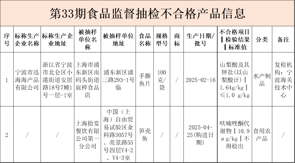 10月17日,上海市市场监管局公布上海市市场监管局2025年第33期省级食品安全抽检信息。