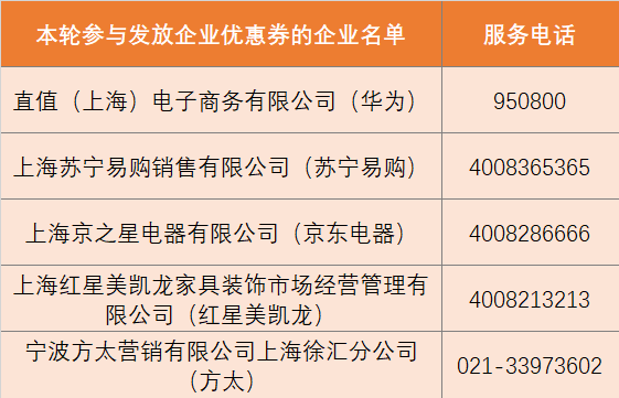 本轮参与发放企业优惠券的企业名单。市商务委图