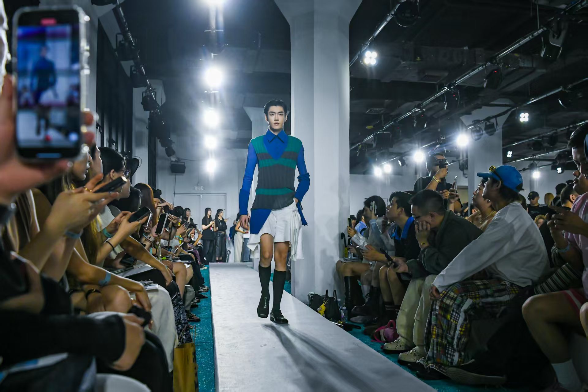 十位抖音创作者从屏幕走向秀场,有人在利落剪裁下呈现出强大气场,有人身着轻盈面料诠释细腻。从清爽的浅蓝到深邃的丹青,从飘逸的纱质到挺括的针织,生动诠释着:时尚,既是对趋势的展现,更是对自我风格的表达。