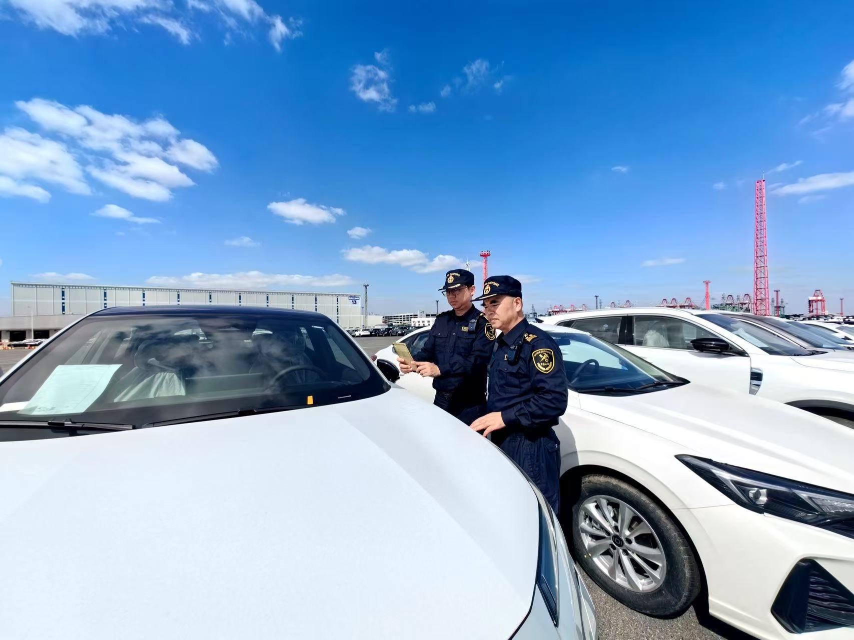 头图为上海外高桥港区海关关员对出口汽车开展监管工作。上海海关供图