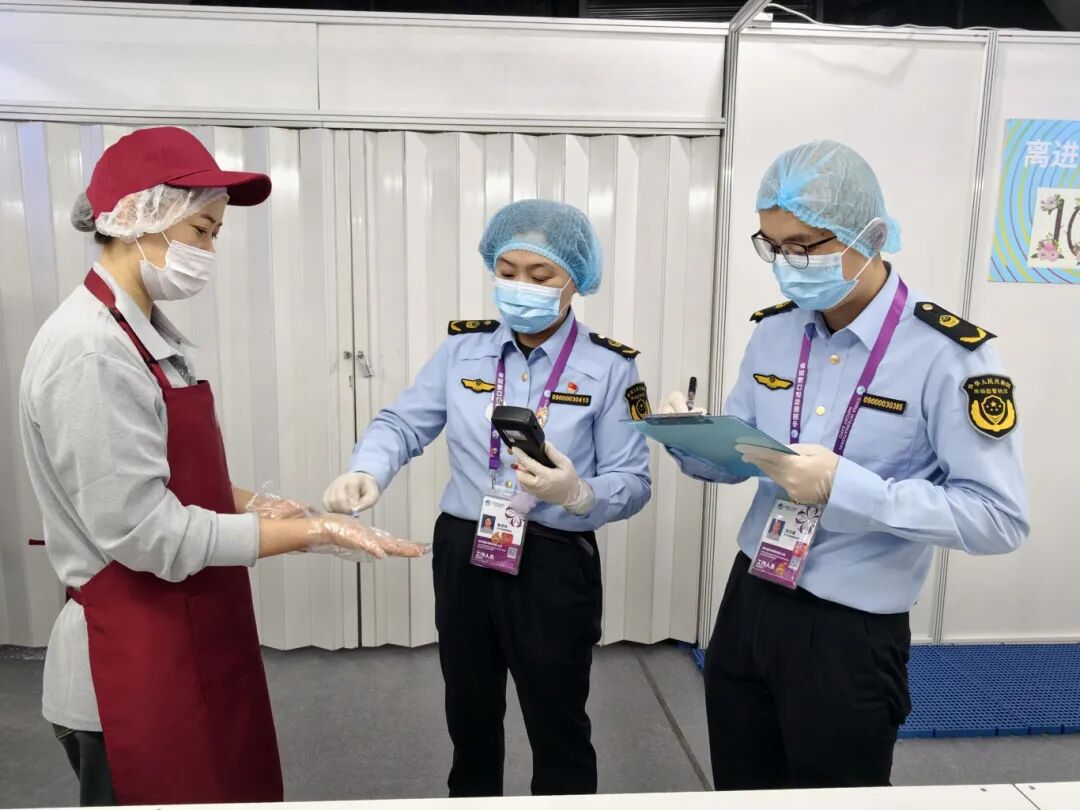 进博工作人员和志愿者用餐是由馆外加工、运输至馆内用餐。市场监管部门深化市、区两级联动机制,加强协同联动,全链条实施严格监管、智慧监管。在馆外供餐企业加工现场,相关区市场监管部门负责监督餐食加工、分装、装运等。在馆内,市局执法总队对各分餐点的餐前准备、餐中分发及餐后整理等环节进行监督。