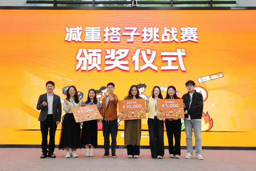 作为响应国家“体重管理年”行动的重要举措,本次减重搭子挑战赛以“三人成团”的形式开展,鼓励员工相互监督、科学减重。截至10月底,所有完赛选手累计甩肉686.6千克,用实打实的成果践行健康生活理念。最终,挑战成功的前三强减重搭子团分别斩获1万元、8000元和5000元奖金,成为这场健康比拼中的最大赢家。