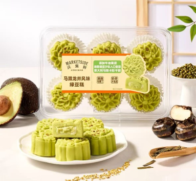 例如,一款马蹄龙井风味绿豆糕,将广西马蹄丁和桂花等特色食材,与墨西哥牛油果泥、泰国糯米等全球优选食材进行融合,比大部分绿豆糕减糖20%,不添加防腐剂,成为一款减糖、优质原料、口感层次更丰富的商品,让传统糕点实现了现代创新。