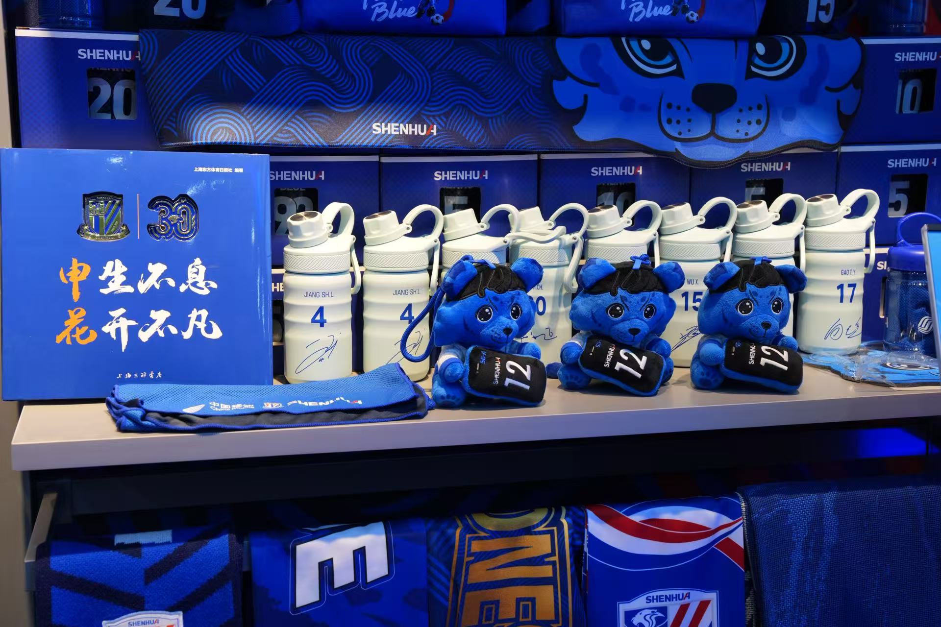 走进联名厅,浓郁的“申花蓝”贯穿始终,5G-A技术的应用让整个空间充满未来感与互动性。厅内设有多个主题区域:在“AI合影任意门”,球迷能够与喜爱的球星“隔空同框”,实现“零距离”互动;来到“5G-A申花权益体验区”,观众可现场感受依托5G-A网络的4K超高清视听盛宴;在“咪咕体育竞技游戏区”观众则可参与互动赛事,体验科技加持的足球乐趣;蓝色荣耀主题咖啡馆可以提供印有申花队徽或者移动LOGO的拉花咖啡,营造沉浸式氛围;球员签名刻字杯、围巾、球衣、定制公仔等限量周边集中展示于“联名文创好物区”,充分满足球迷的收藏需求。