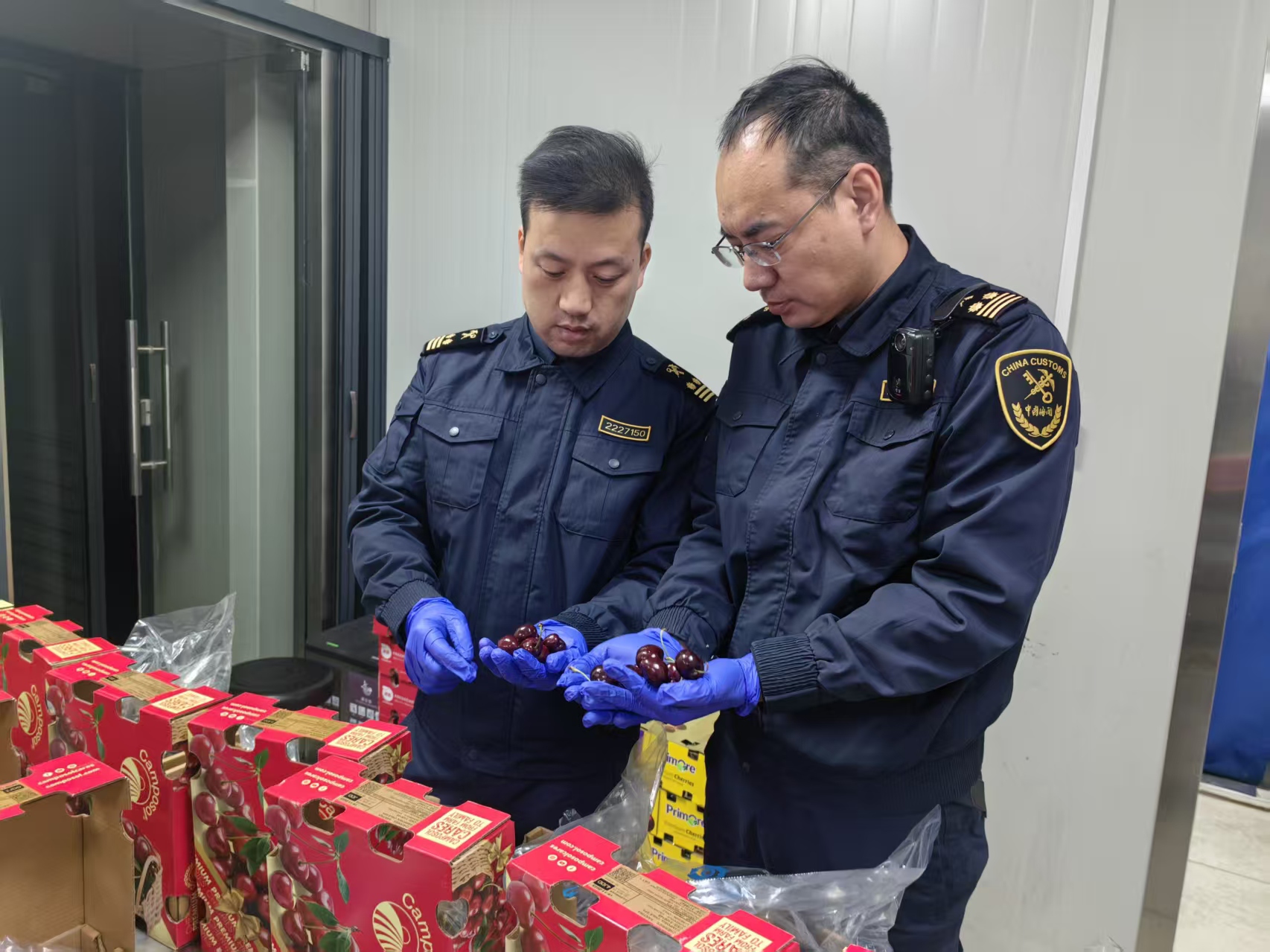 “这批樱桃从采摘到抵达中国市场,全程冷链运输不超过48小时。”上海浦东国际机场海关物控查检一处查验七科副科长谢敏一边核对随附货证,一边介绍,“我们提前与进口商建立专线联系,动态掌握航班动态和货物状态。”针对樱桃易腐烂、对运输温度要求严苛的特性,该关专门优化“理货-驳运-查验”全流程衔接机制,开通生鲜农产品“绿色通道”,安排专人专班负责查验调度,确保樱桃包机到港后第一时间开展查验作业,最大限度压缩通关时间。