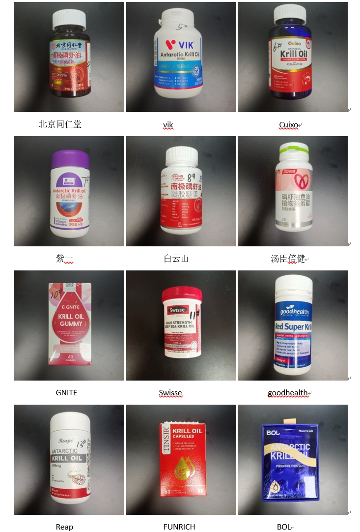 对市面上热销的15款国内外南极磷虾油产品开展了检测和调查(上述图片下方标注的品牌/出品方均来自网页宣称)。受访对象图