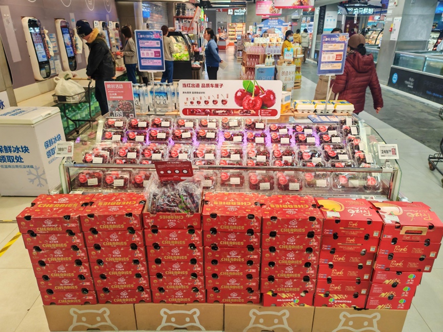 据盒马方面介绍,目前海运车厘子已经上架。今年,智利车厘子的品质更好且个头更大。盒马门店陆续上线5J的“超大”车厘子,随着海运车厘子陆续到港,车厘子的供应量也将更稳定。“以前觉得4J已经是‘顶配’了,但现在,即便不是过年,日常购买也非常方便,并且价格越来越亲民,尝鲜的门槛降低了。”一位在上海盒马门店购买车厘子的消费者说。