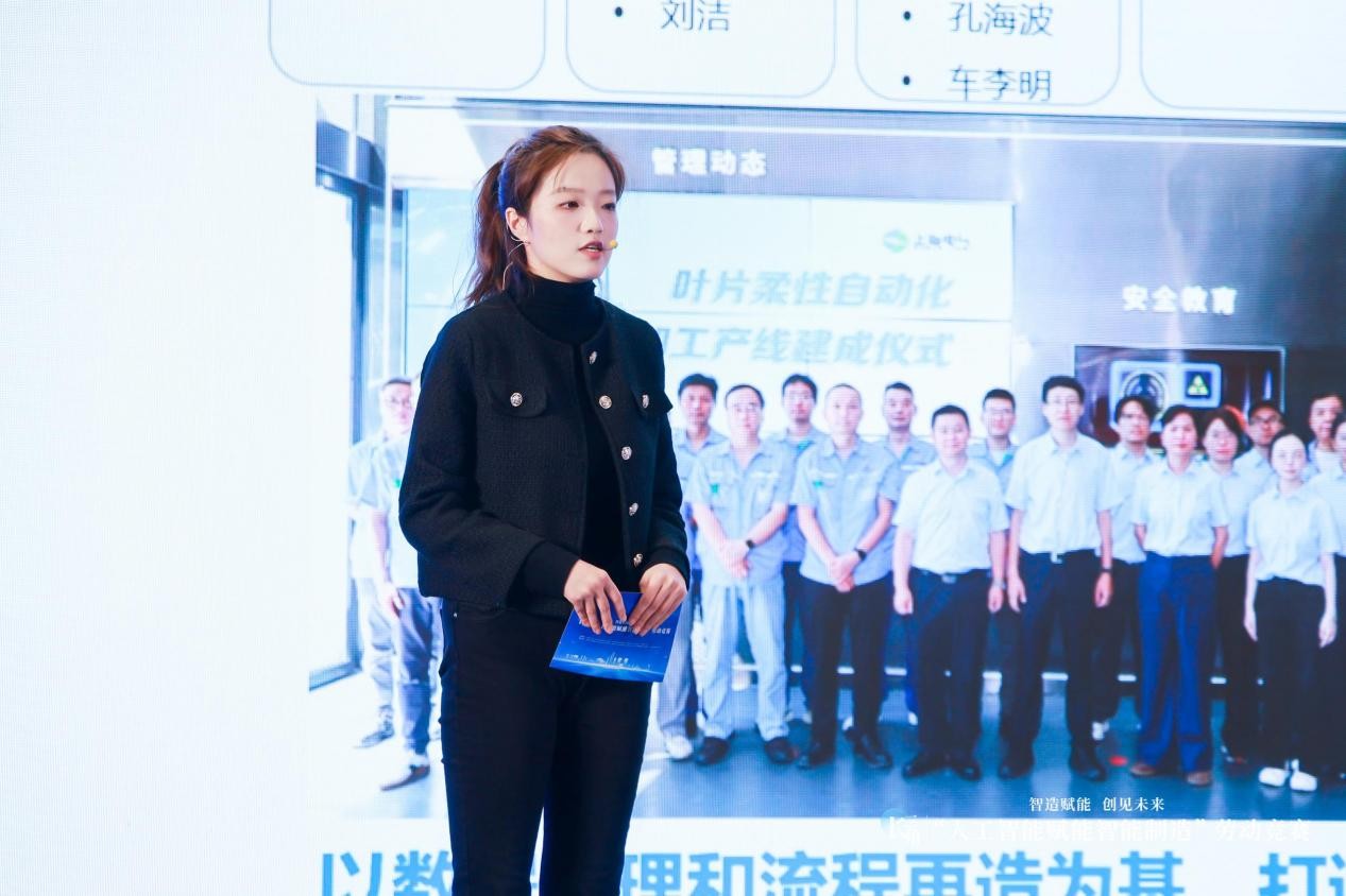 在案例分享环节,上海电气电站设备有限公司上海汽轮机厂的任雨馨分享了大电气产业工人队伍围绕叶片产业数字化变革一线的生动实践与不懈探索。