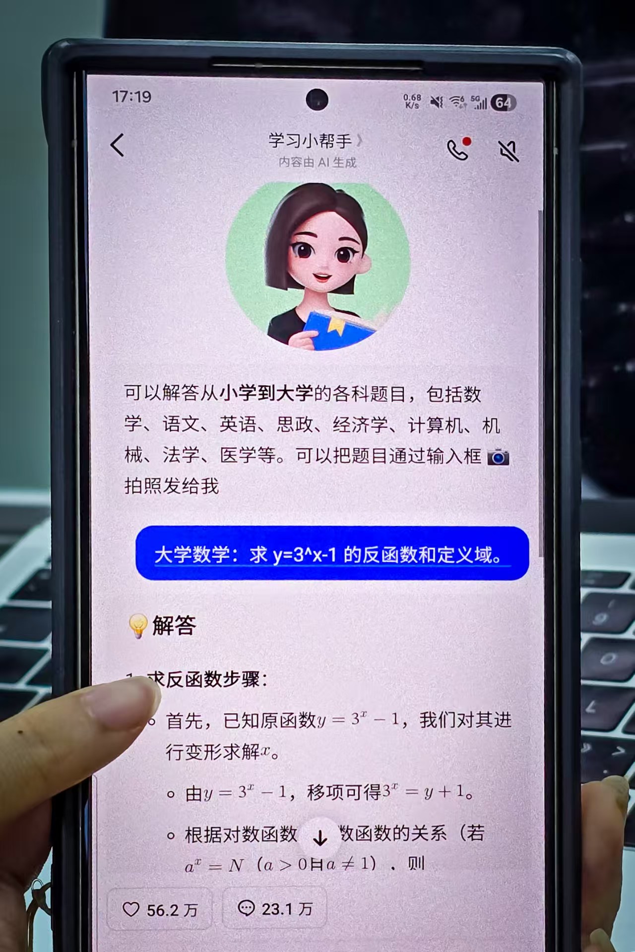不过需要警惕的是,用AI只是辅助学习,要防止孩子完全用AI代替了思考,同时,家长也要具备对AI生成答案的判断能力。