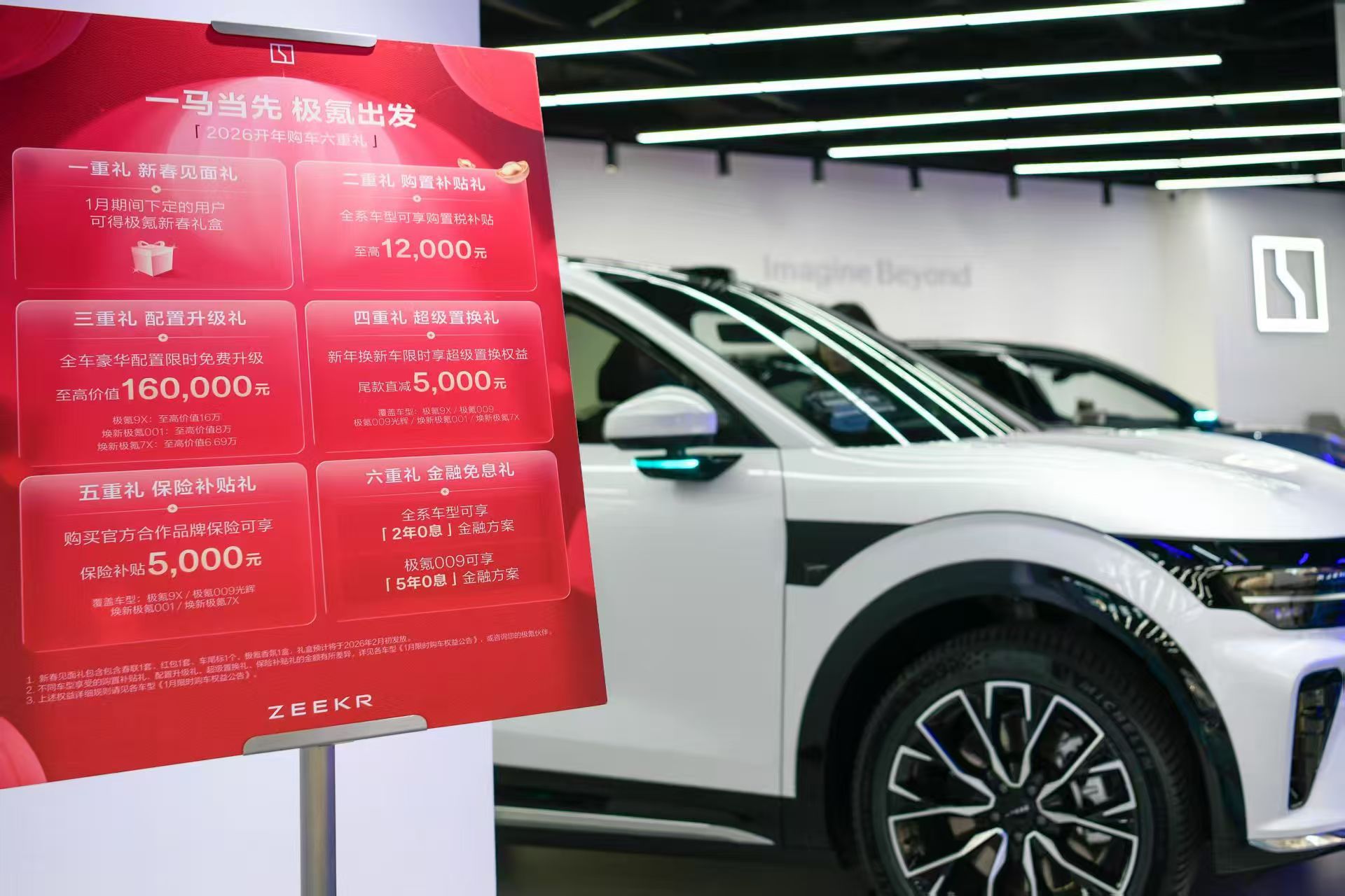 头图为极氪门店促销海报,劳动报记者颜筱依摄