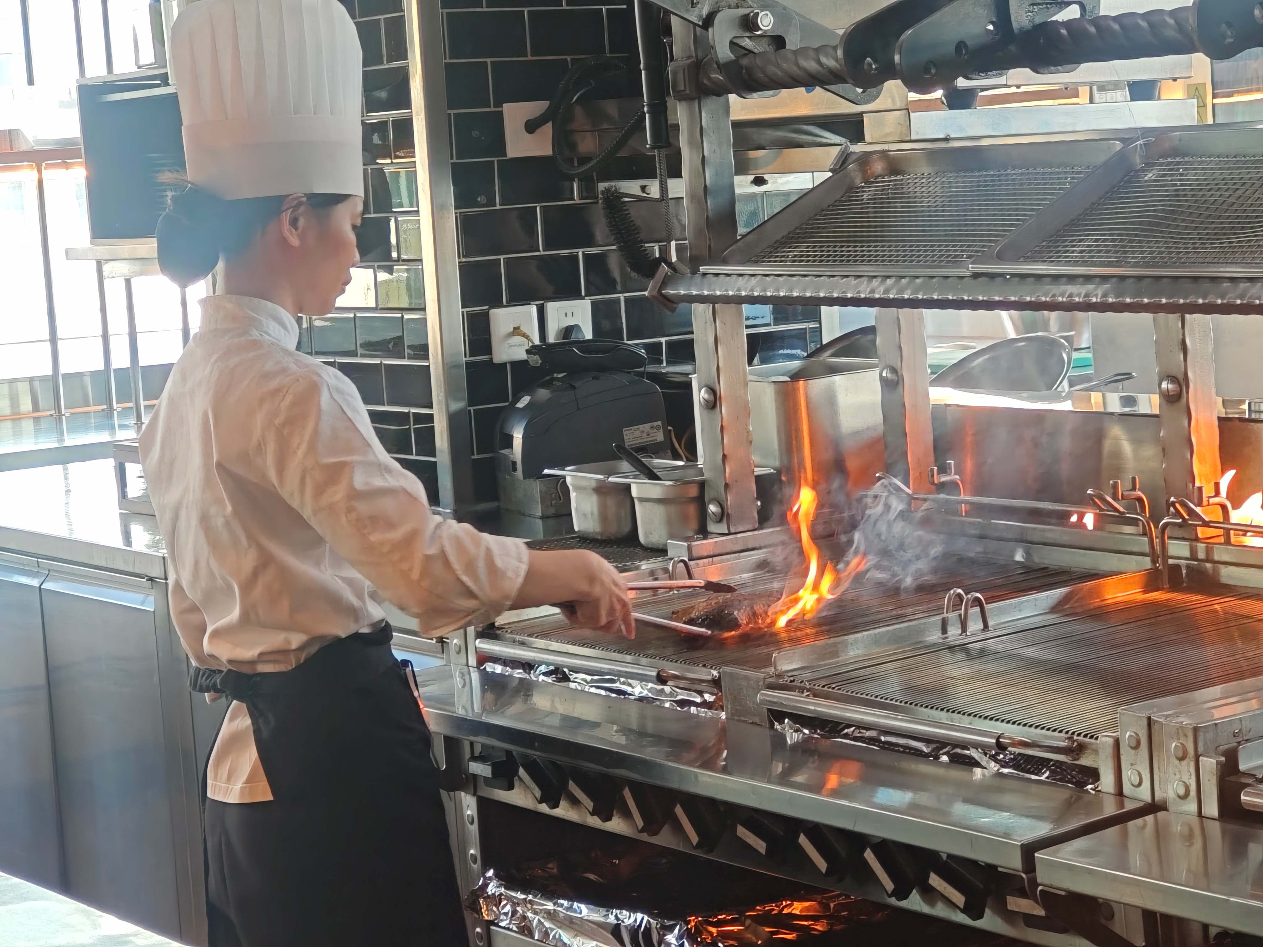 1515牛排馆·酒吧现场进行牛排烹饪。劳动报记者陆燕婷 摄影