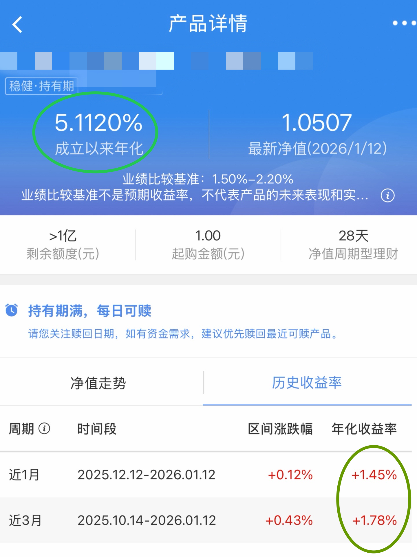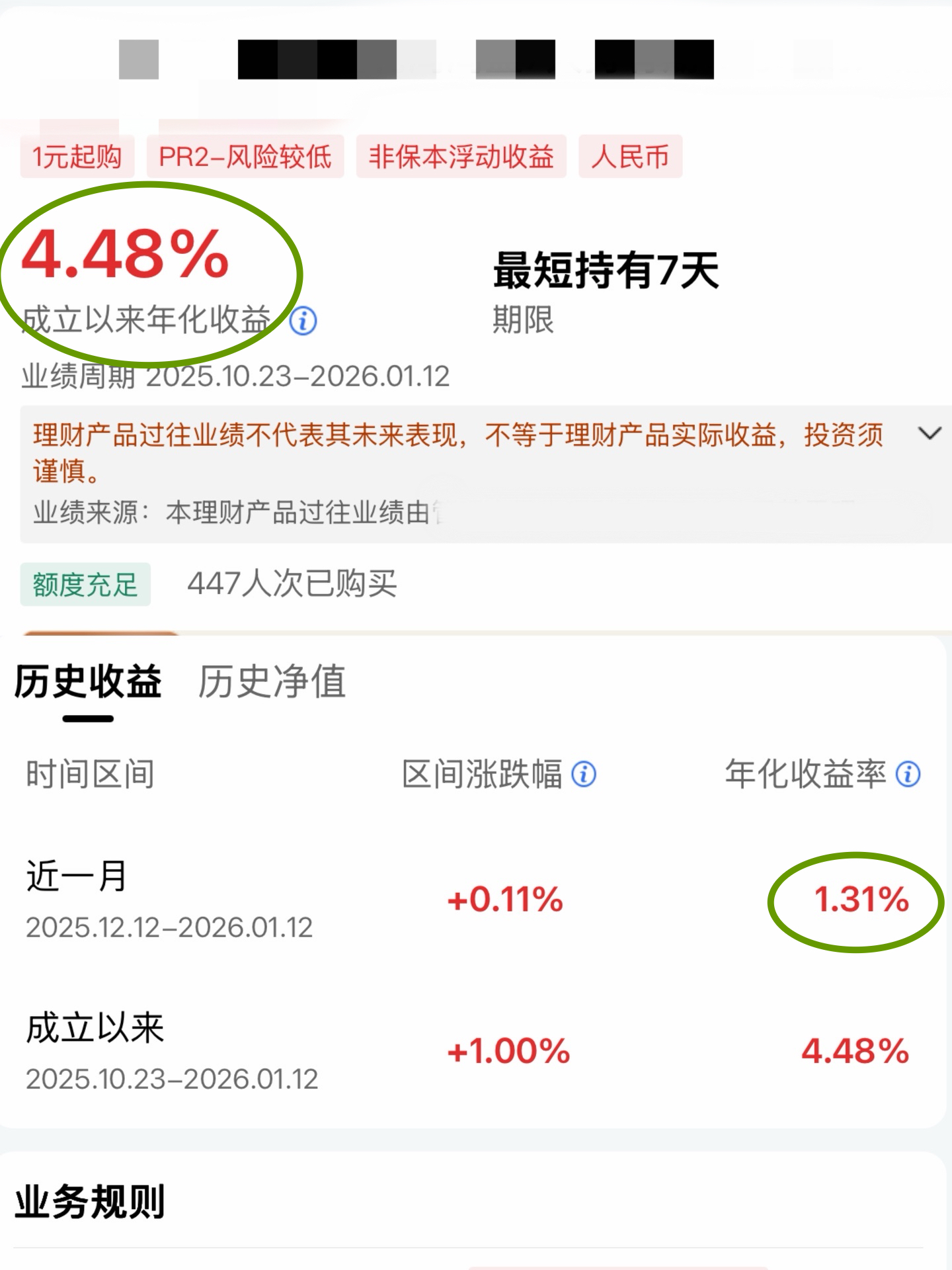 另一种情况,这只理财产品的成立时间非常短,属于首发产品。首发产品可能通过拉收益搞活动等方式,让数据变得好看从而吸引用户多买。