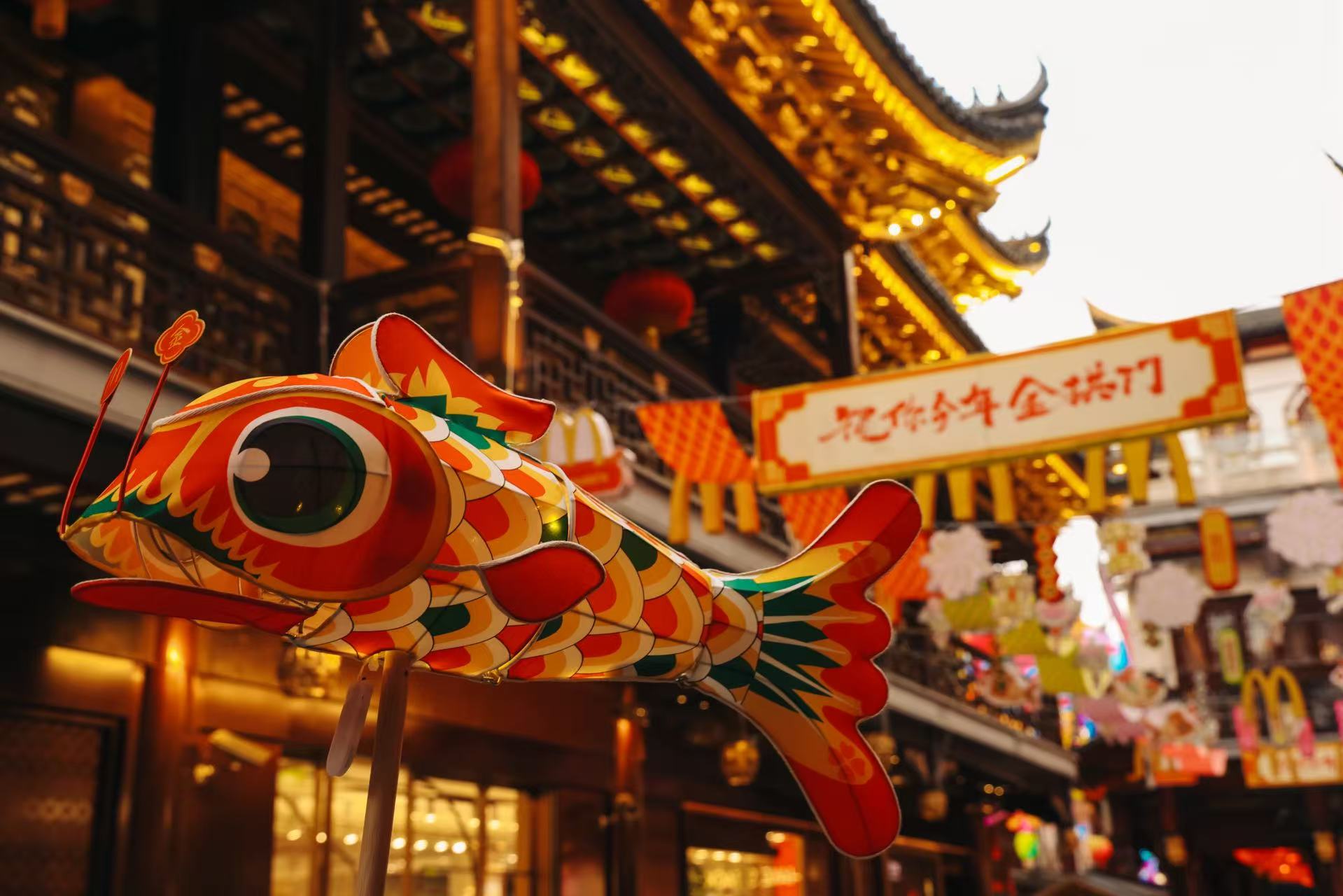 丙午春节将至,麦当劳中国开启新一轮“祝你今年金拱门”新春主题活动,携手多位非遗传承人打造主题灯彩,以“一灯一愿”传递新春祝福。这家旗舰餐厅以安徽鱼灯打造新春节庆氛围与互动装置,化身沉浸式“非遗华灯宴”首秀城市中心。