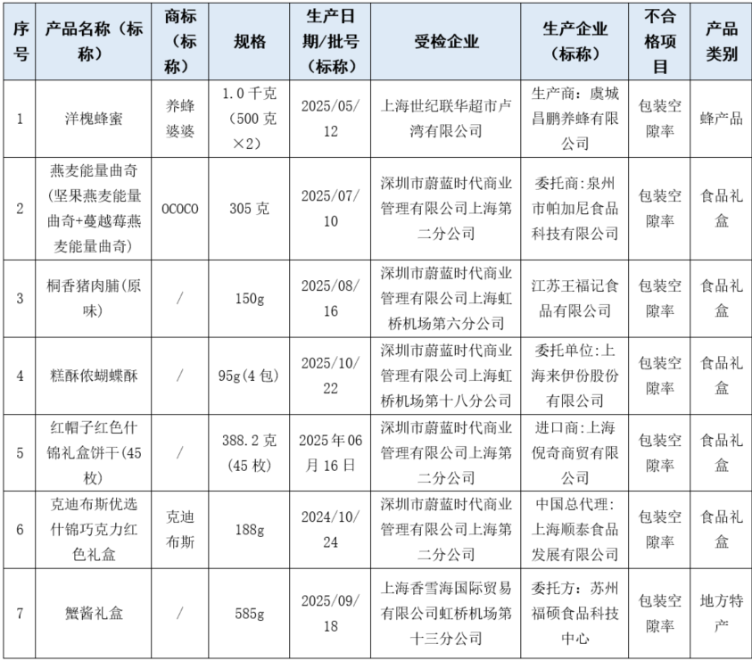 监管部门指出,这7批次不合格产品均存在包装空隙率超标的问题,这是导致包装“虚胖”的直接原因。