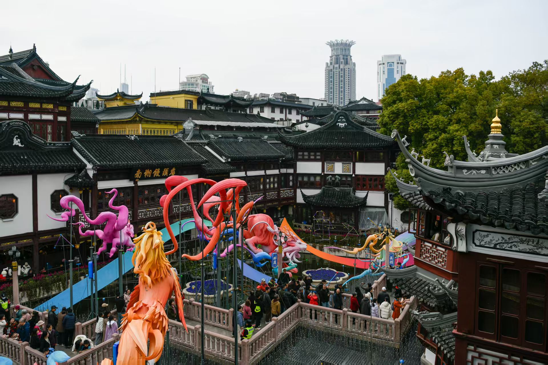 本届豫园灯会迎来历史性升级,首次突破传统地理边界,将灯区延伸BFC外滩金融中心、古城公园、方浜中路、福佑路及外滩,形成“六区一体”的全新格局。