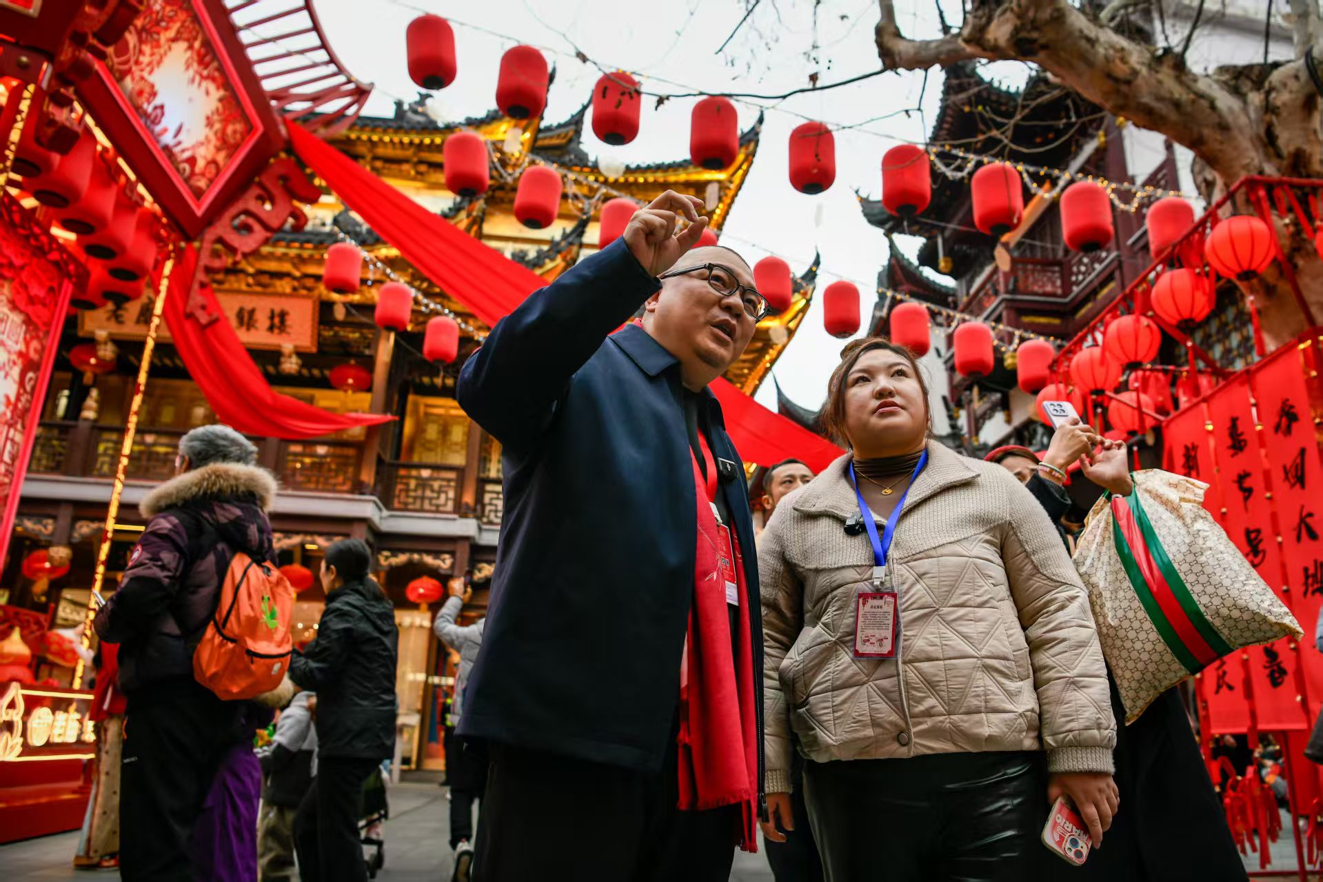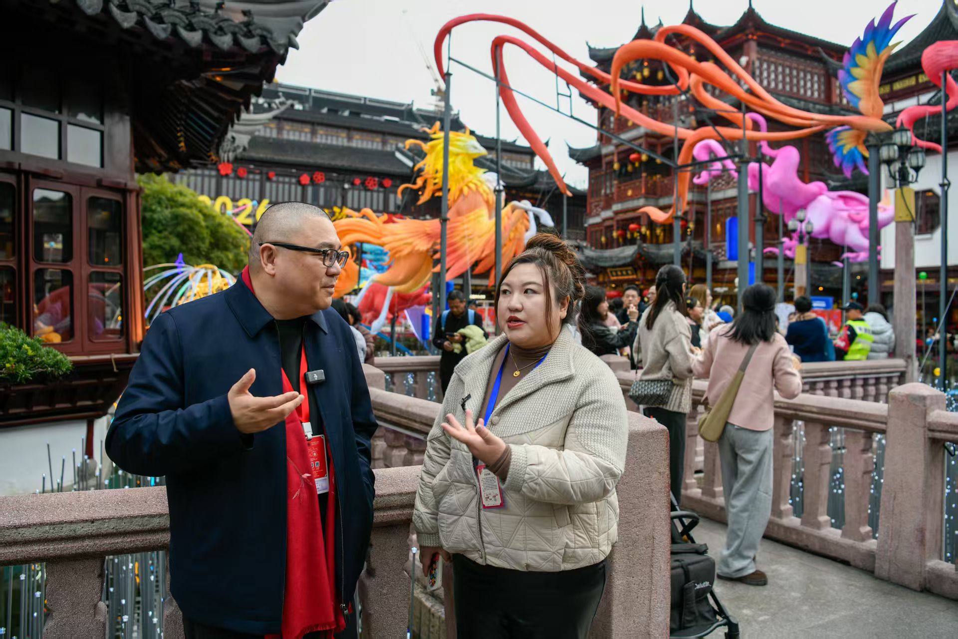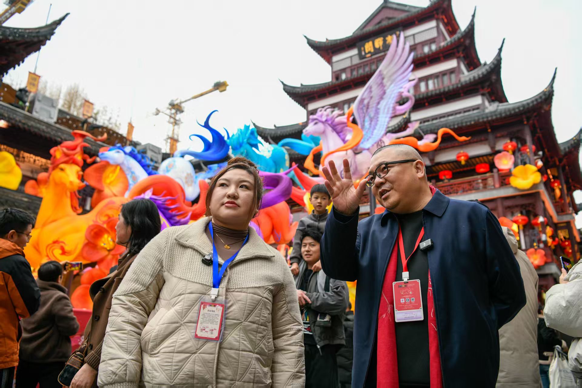 头图:上海市劳动模范、豫园文化商业集团党委书记陈继东,和我们一起带大家沉浸式体验豫园灯会。劳动报记者颜筱依 摄影