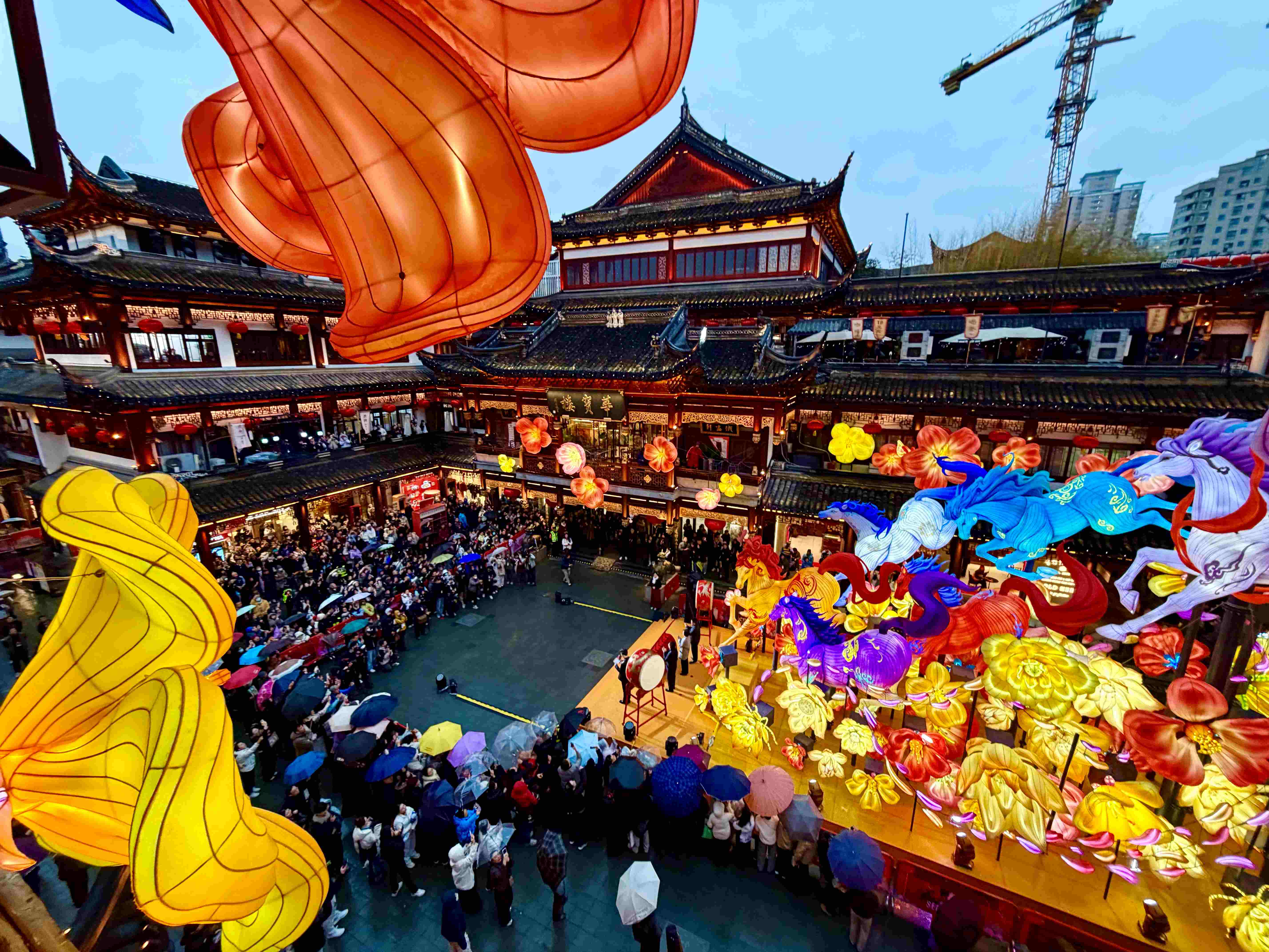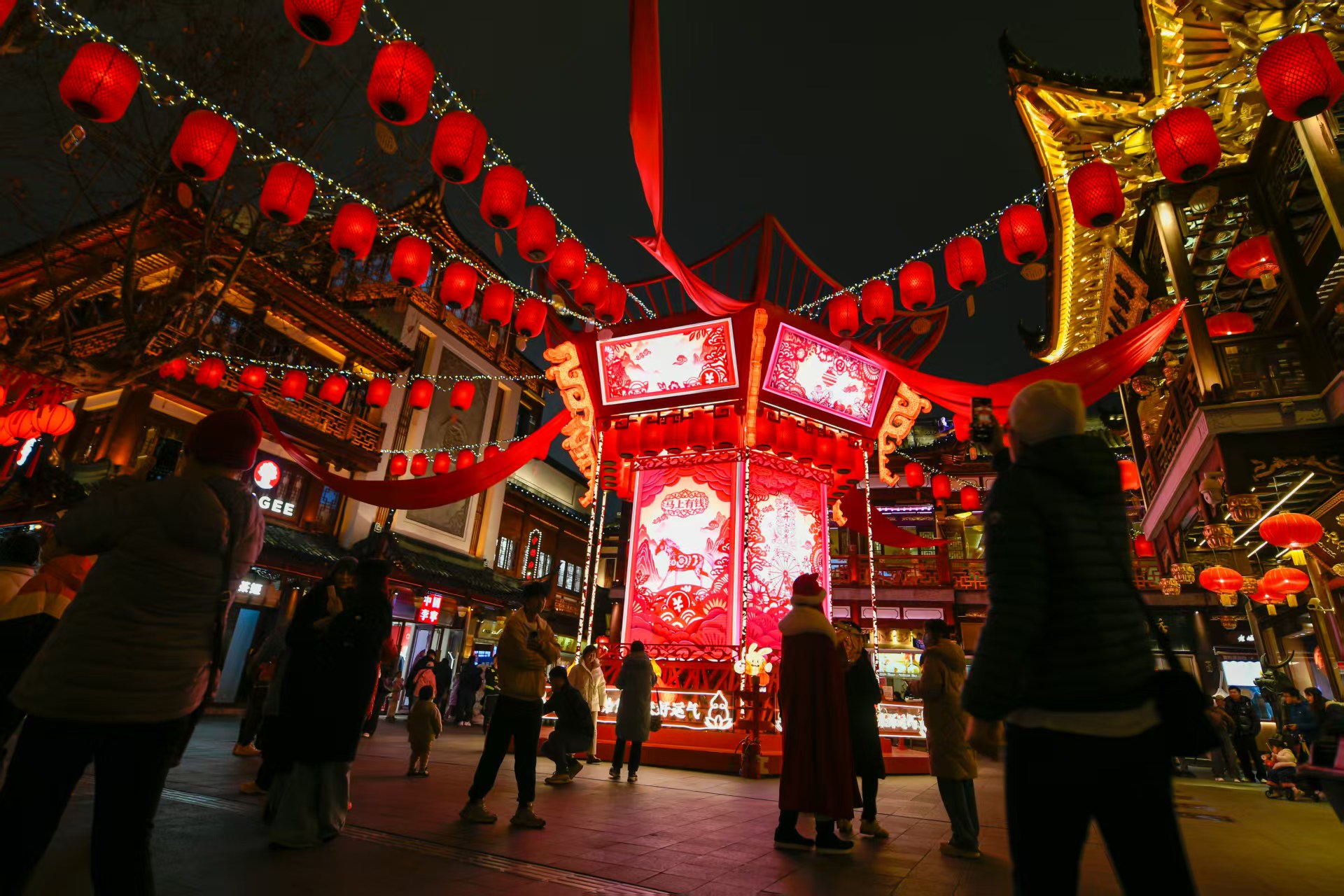 “比如我们站在景容楼前的巨型走马灯前,用手机扫码,能够开启‘数字互动体验’。傍晚行走在豫园灯会民俗艺术灯区,每天16时30分、以及18时左右各有一场‘人机互动’体验,与机器狗、机器马现场互动。”陈继东介绍。