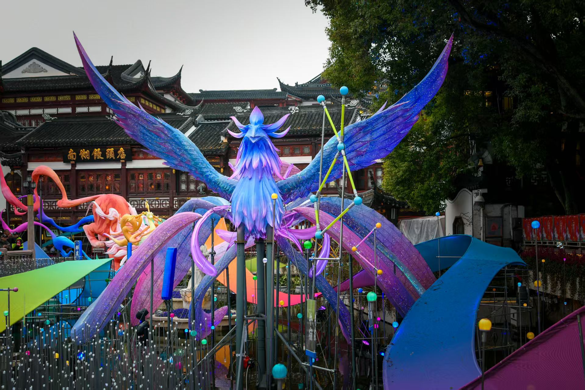 劳动报记者还了解到,九曲桥会于每日定时上演“数字光影流光奇”,融合“二十八星宿”文化与“山海奇豫记”IP,以瑞兽朱雀为核心,演绎星宿神话。除了匠心独具的实体灯组,游客还能通过手机召唤AI神兽“胐胐”智能伴游,享用大豫园赏灯游玩数字化导航、“AI拍照”体验“人在灯中游”专属非遗场景、参与“数字灯谜,边走边猜”互动游戏,体验“VR幻境,穿越山海”的沉浸式感受。