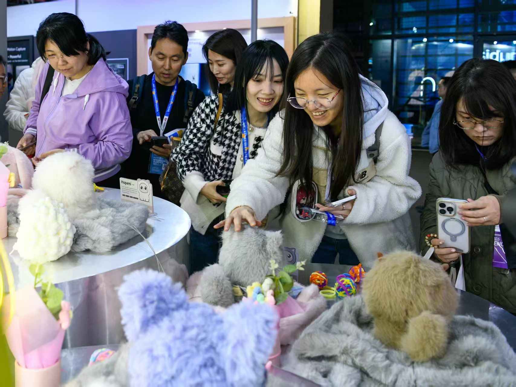 头图为展会现场观众对AI宠物颇感兴趣,劳动报记者颜筱依摄