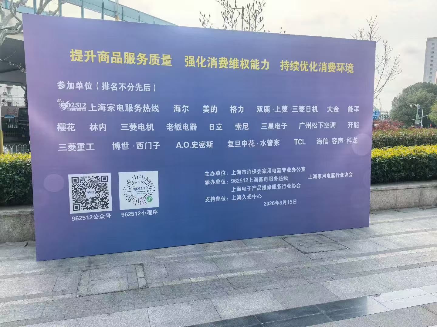 3月15日,虹口区消保委联合上海市消保委健康消费专业办公室、虹口区市场监管局、欧阳路街道,在鲁迅公园举行以"提升消费品质、赋能美好生活"为主题的2026年"3·15国际消费者权益日"主题活动。