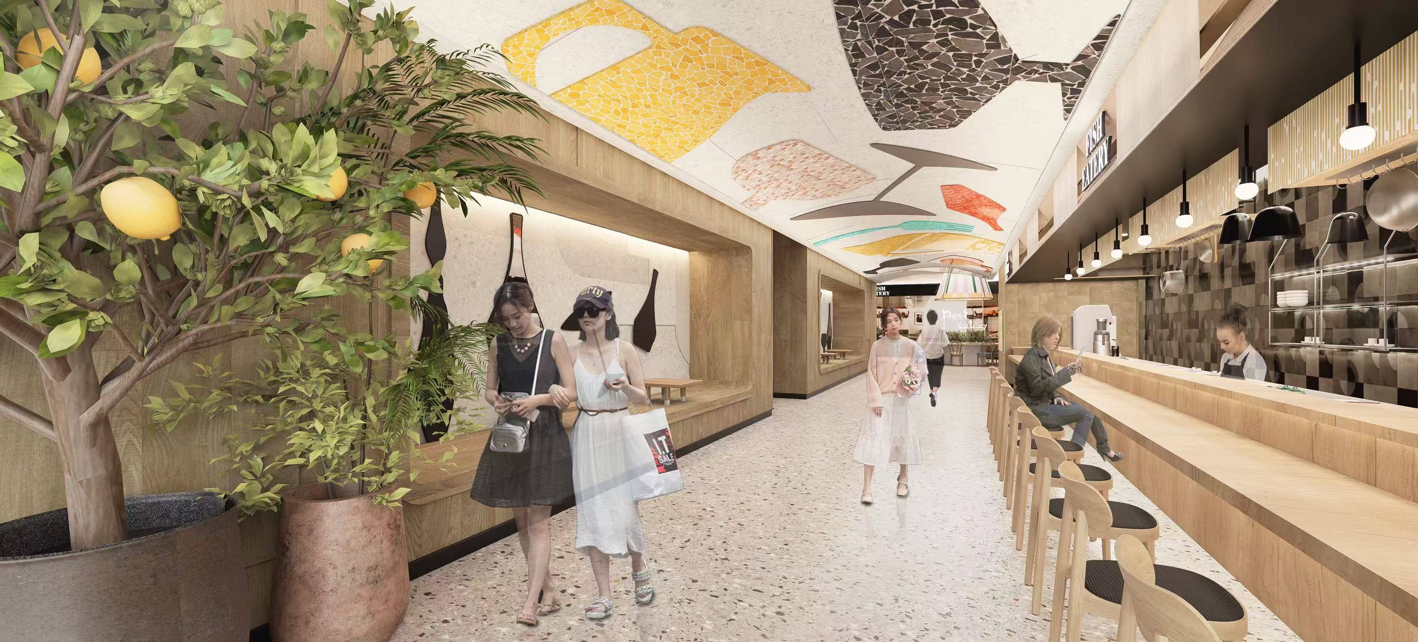 项目B1层将以“她,和她的家”为灵感,打破传统商场的柜台式空间结构,通过巧妙的动线重组与场景叙事,将“家”的情绪体验引入公共空间。