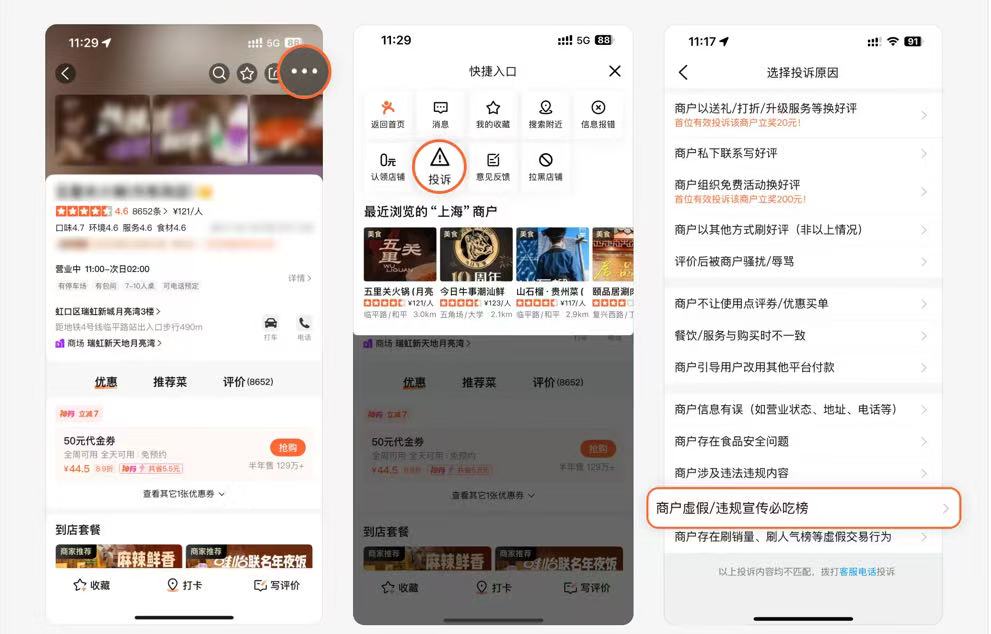据了解,即日起,用户在大众点评App搜索涉嫌冒用“必吃榜”荣誉的门店,即可通过商户页面“虚假/违规宣传必吃榜”投诉入口,上传现场照片并描述情况完成举报。如无法确认商户是否为虚假、违规宣传,可以通过商户页面中的“商户事记”专区校验上榜信息。