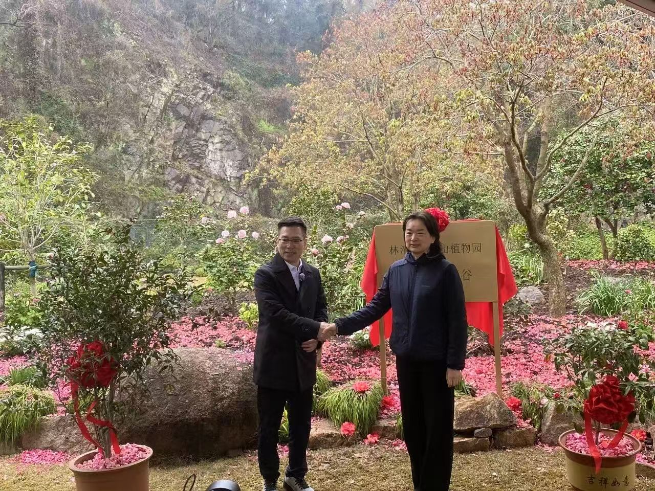 头图:携手揭牌山茶花谷。受访对象供图