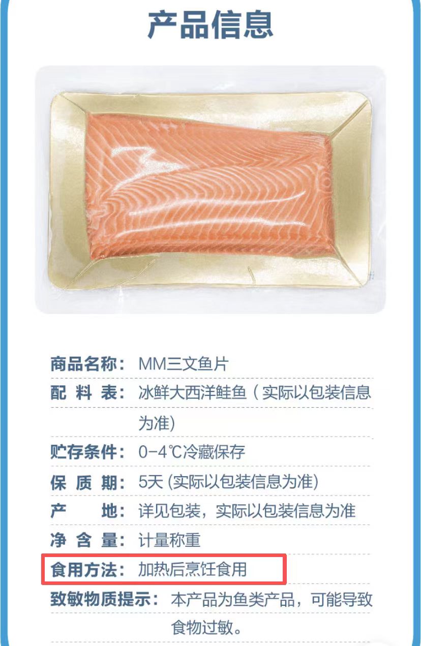 有媒体发现山姆所售三文鱼需“加热后烹饪食用”。图片来自网络