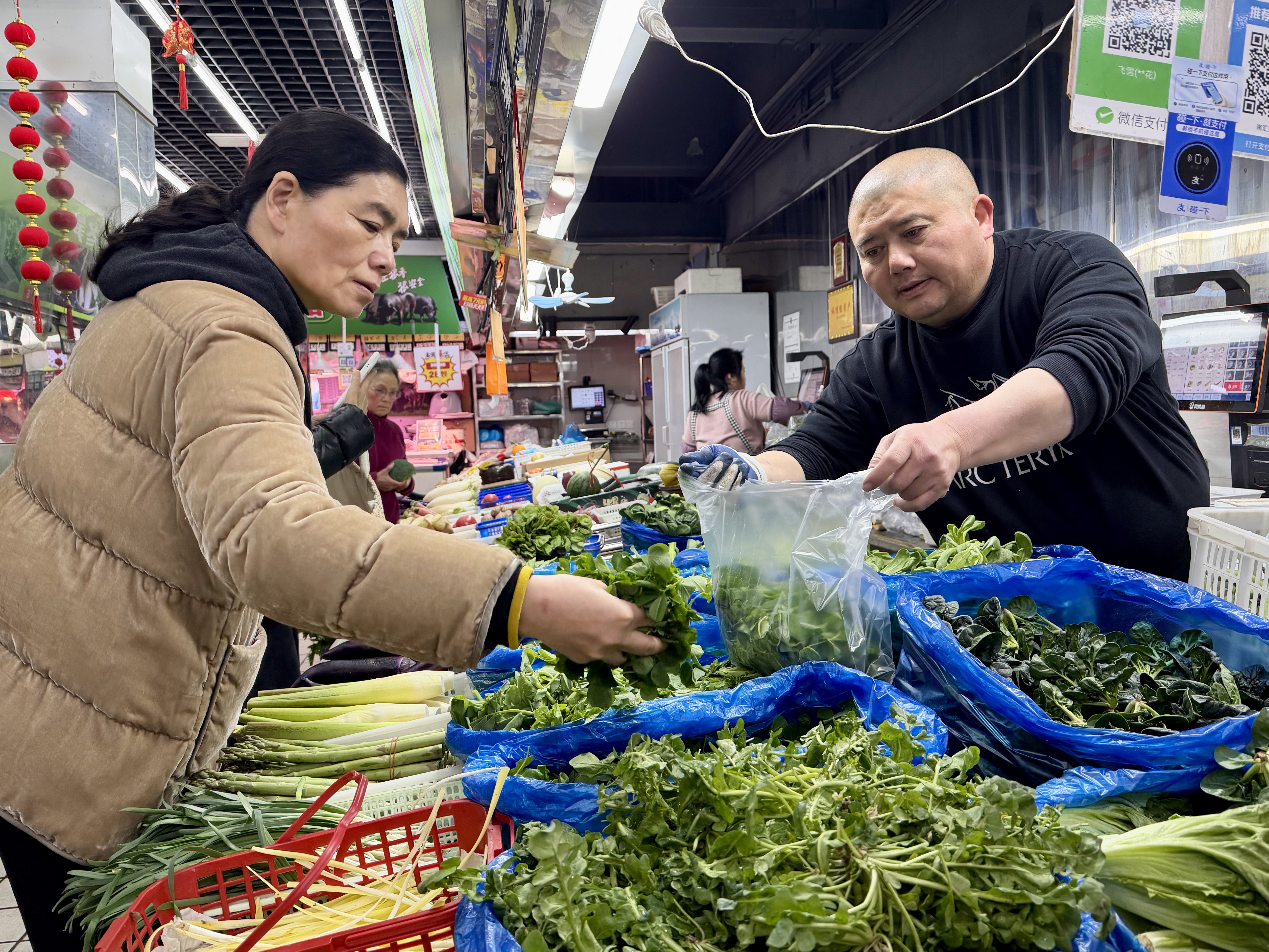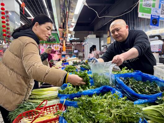 市民在菜场选购春菜。劳动报记者贡俊祺 摄影
