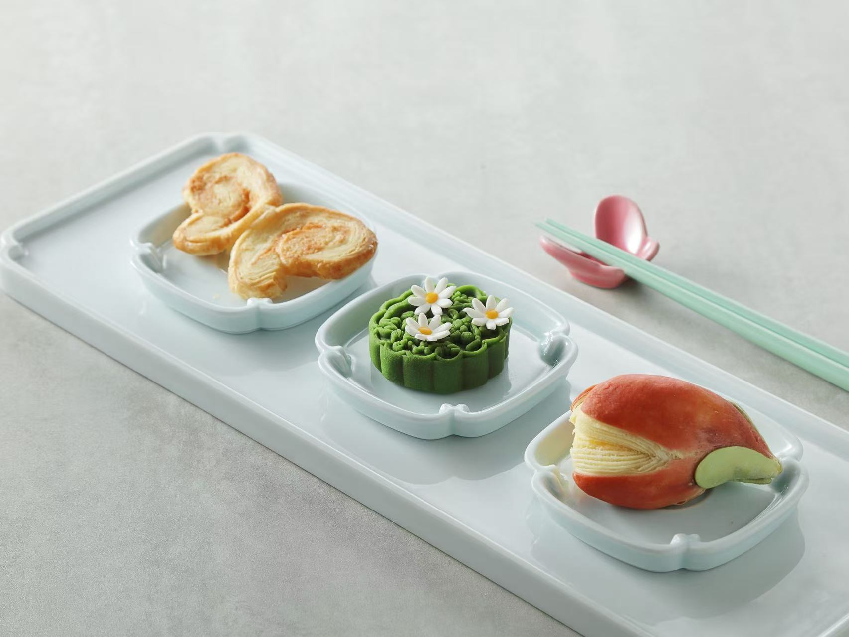春天的点心也格外赏心悦目。玉兰花、蝴蝶、雏菊……以非遗手工点心闻名的绿波廊用色彩斑斓的象形点心传递春日韵味。前阵子火爆全网的“英国首相严选”蝴蝶酥与繁花绿豆糕、椰香玉兰酥三款点心一起组合成了一盘“春意盎然蝶恋花”。诗情画意的颜值里包裹着各有千秋的味道:绿豆糕甜咸软糯,蝴蝶酥奶香酥脆,玉兰酥椰香回甘。一盘三味,春意盎然。