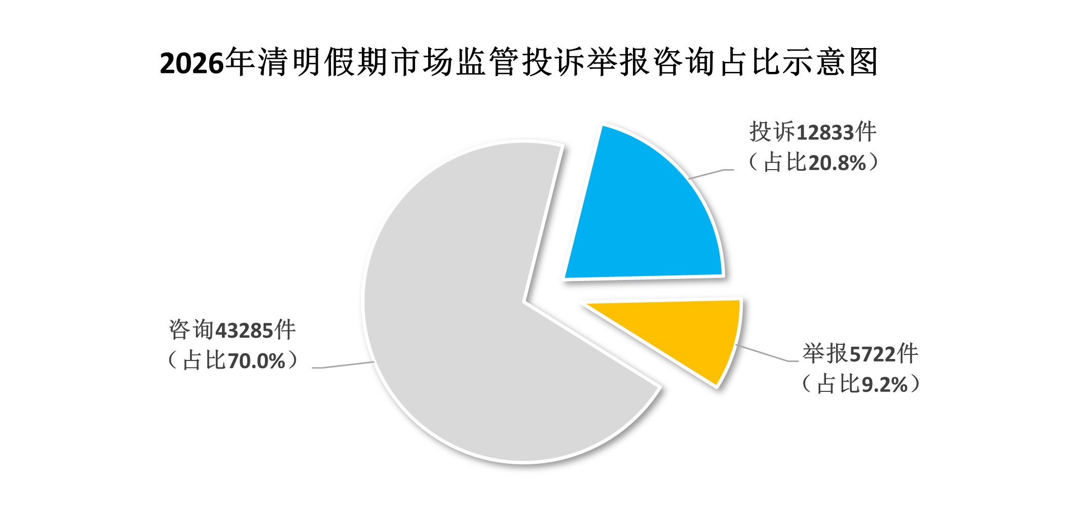 2026年清明假期市场监管投诉举报咨询占比示意图。受访对象供图