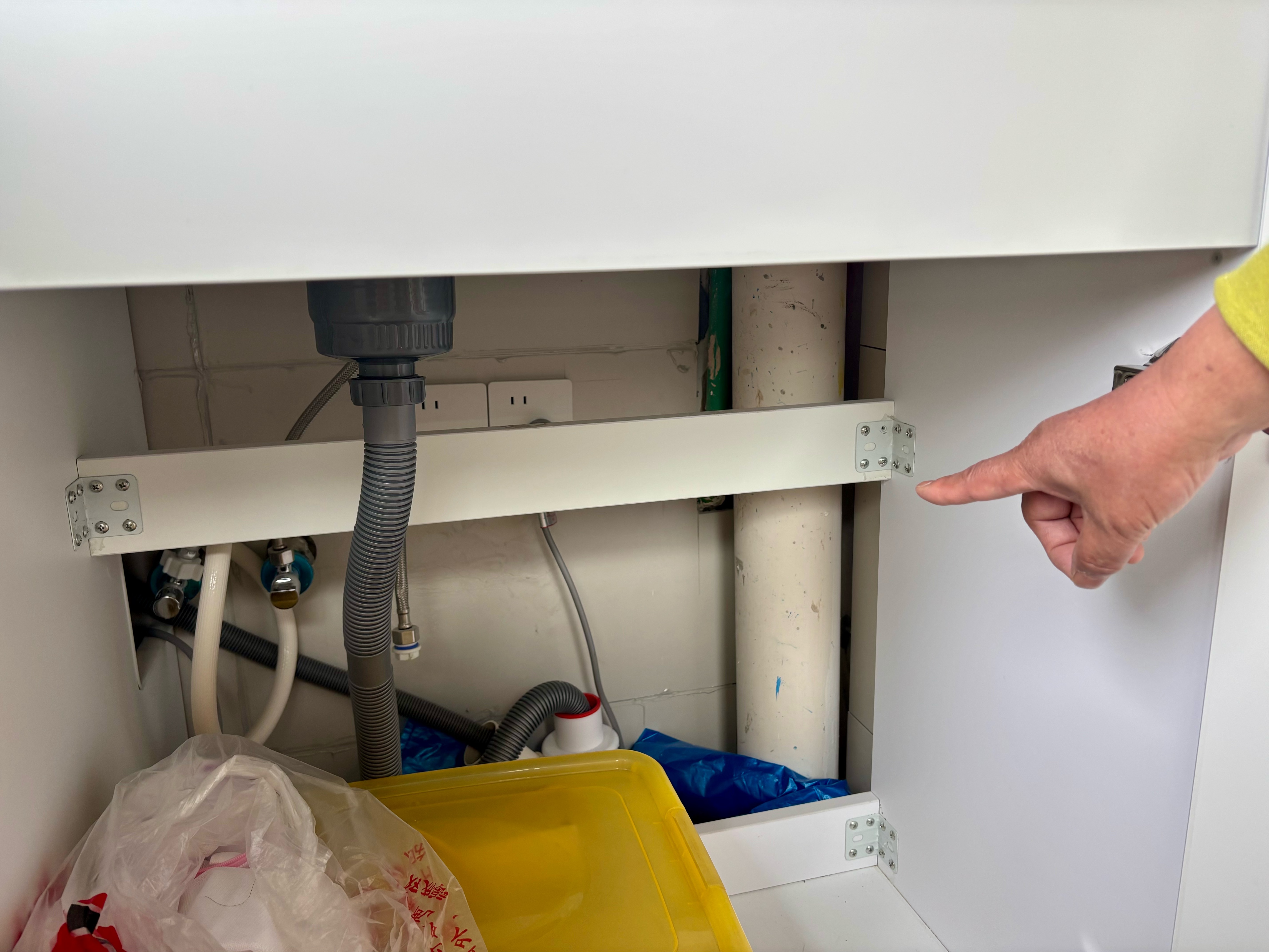 何女士又径直来到厨房间,水斗下方、配电箱等细节不到位,都让何女士很是“糟心”。