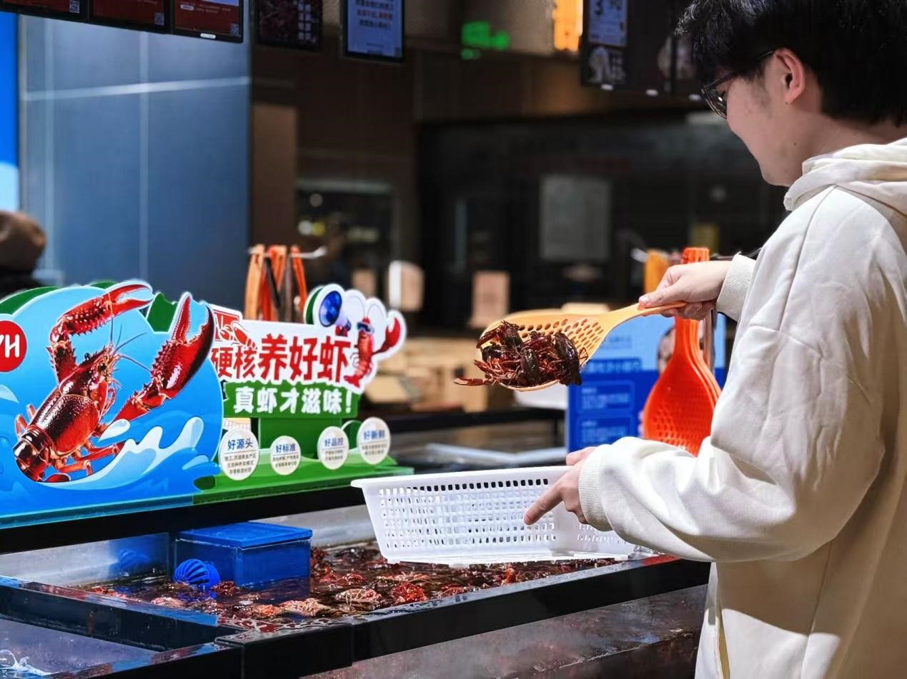 除了餐饮门店外,沪上商超、在线新经济平台的小龙虾也已陆续上市。盒马鲜生大宁店内,多种口味、经过烹饪的熟制龙虾已经开售。永辉超市则在小龙虾养殖端进行一系列源头建设,确保活虾从出水到运输各环节可控,助力“腮白、腹白、肉满”的小龙虾投入全国门店。冻品方面,永辉超市还推出了定制款“辉煌虾”。在服务配套上,今年永辉在全国门店投入全自动洗虾机,帮助顾客解决洗虾烦恼,预计4月中旬覆盖全国80家门店,同时,拥有“海鲜厨房”的门店还提供代客加工及“元气蒸”服务。